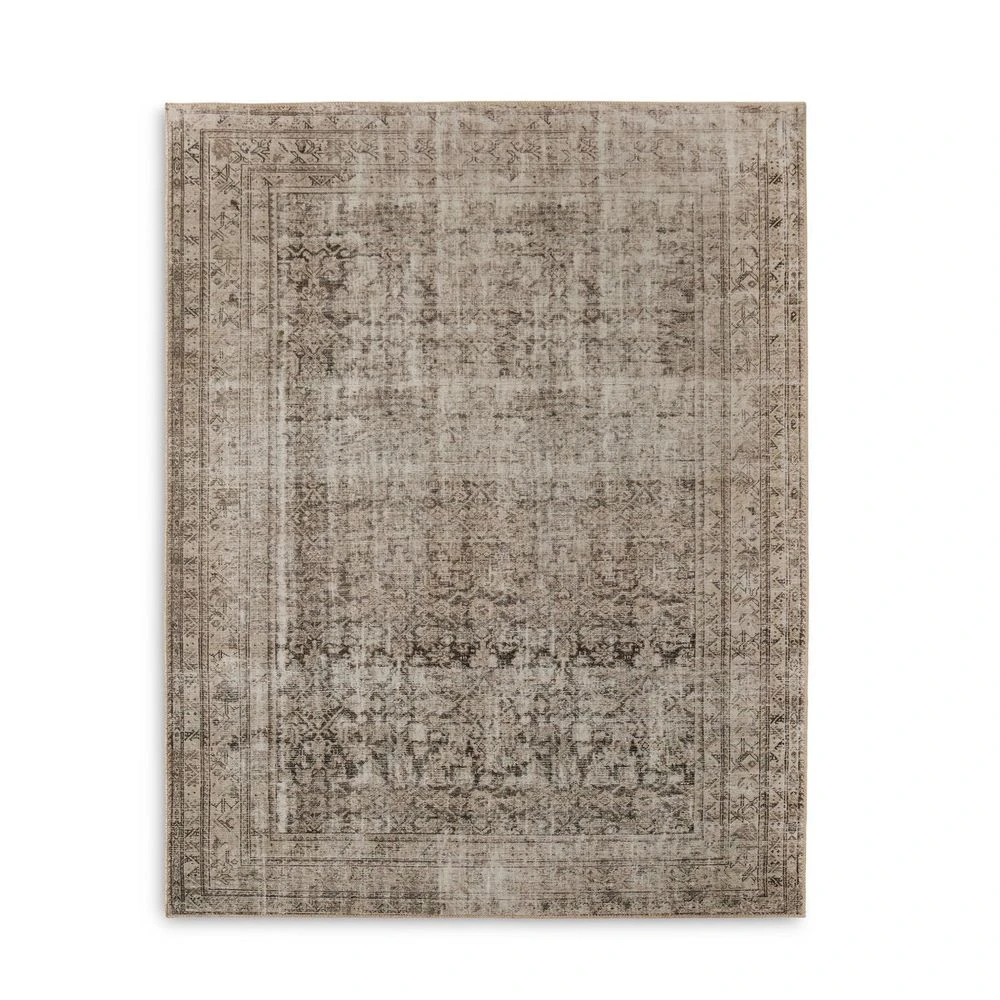 A jute-blend area rug is power-loomed in Egypt. Each pattern is created from a high-quality scan of a vintage rug. A team of graphic designers then perfects the pattern and colors to closely resemble the original rug. The result: a textural and versatile piece that looks authentically antiqued. Allow for a slight variation in size, up to 5%, for this rug.