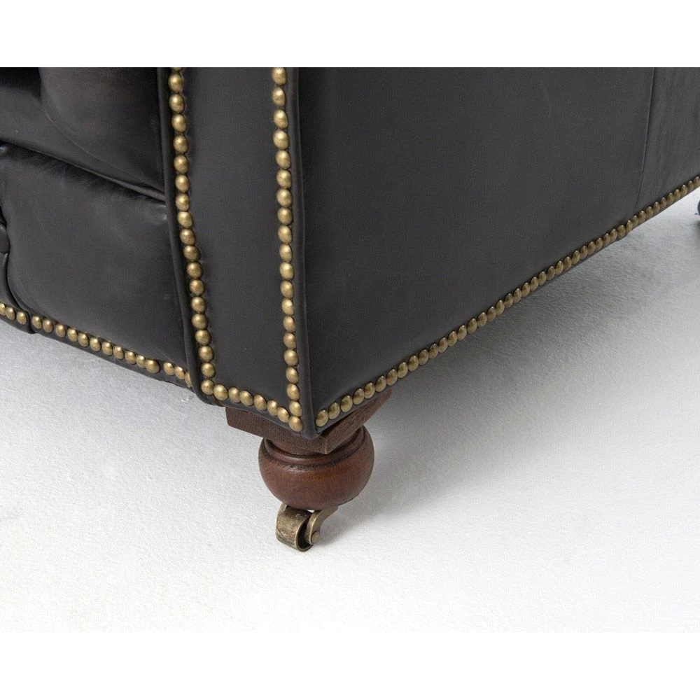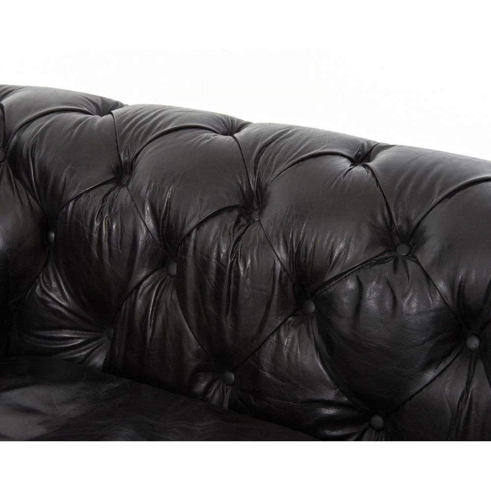 - Description: This dramatic Chesterfield sofa has a grand, men’s club feel. Black saddle-toned, top-grain leather is lovingly aged — an effect that will intensify beautifully in time.