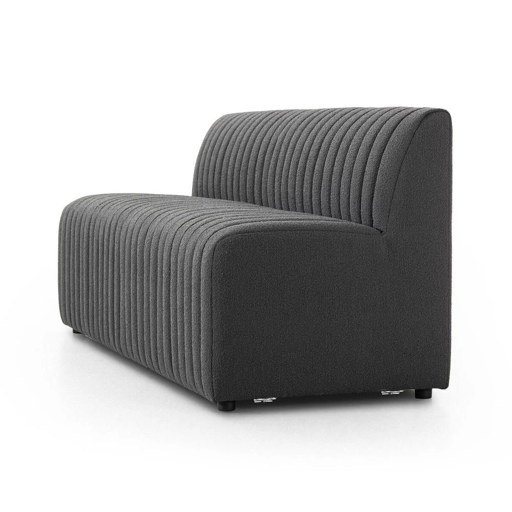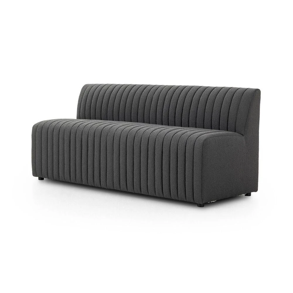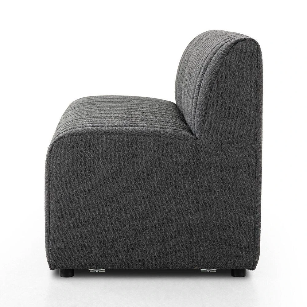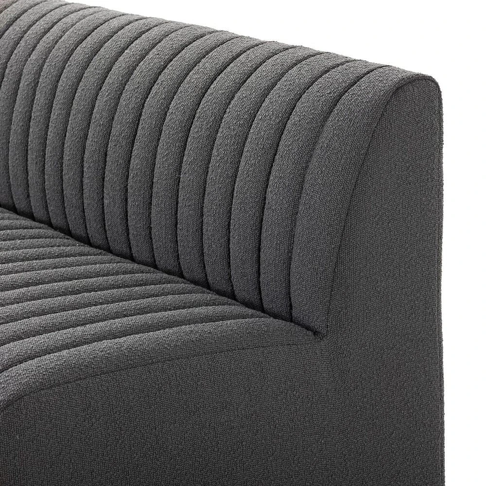 Charcoal high-performance fabric features dramatic channeling, for texture and comfort alike. Option to pair with matching pieces for modularity. Easy to clean and made from fully recyclable materials, Fiqa fabrics are machine-washable, stain-resistant, water-repellent and antimicrobial.