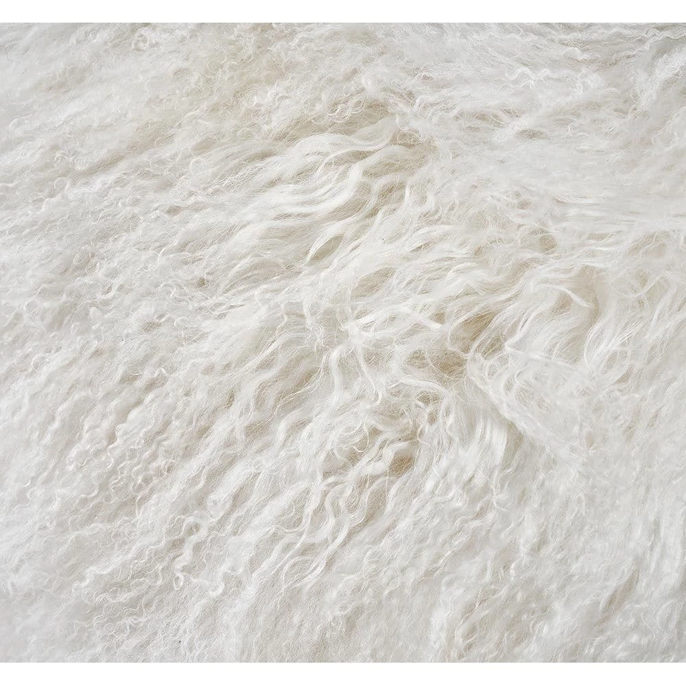 Plush ivory sheepskin on casters transforms the Amal Ottoman into a stunning, versatile accent piece that delivers a luxe sensibility wherever it’s placed.