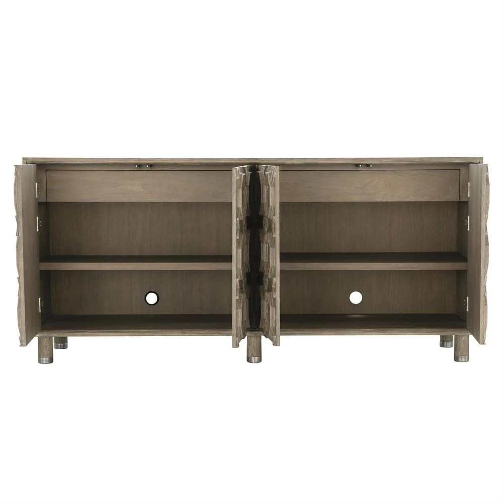 - Four touch latch doors with carved geometric patterned front