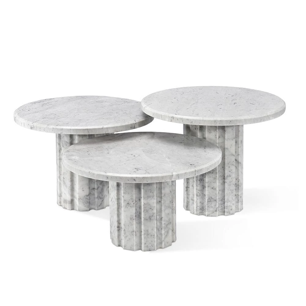 Proving that good things come in threes, the Amerigo Bunching Tables in Carrara white marble make for a stunning trio whether clustered together or displayed solo.