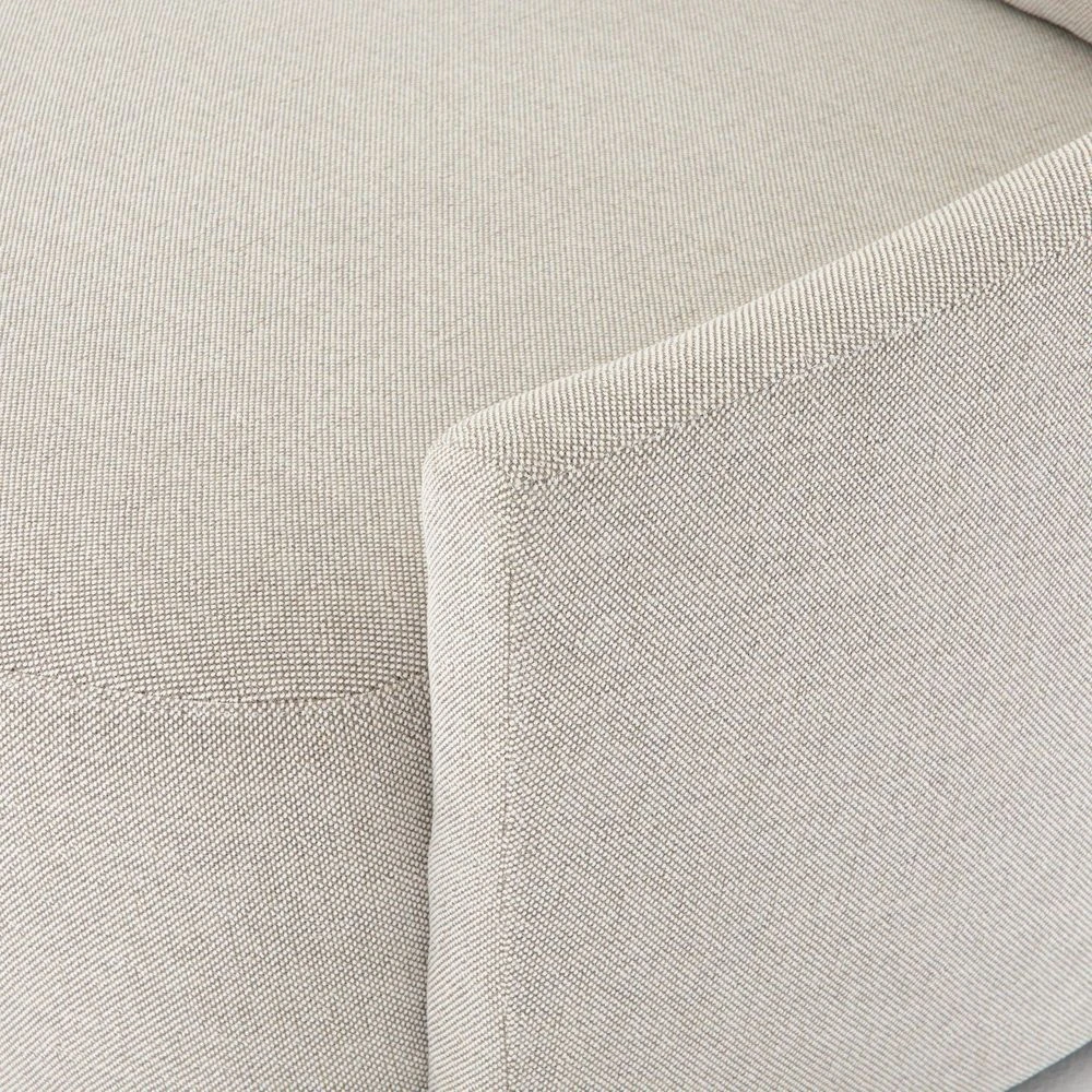 - Description: Roomy style. Off-white high-performance fabric covers a dramatic U shape for a spacious, sink-in sit. Throw pillows present an added touch of comfort to this sensibly styled media lounger, perfect for movie nights.