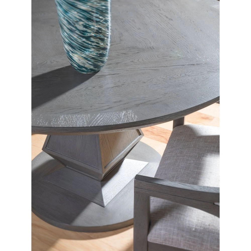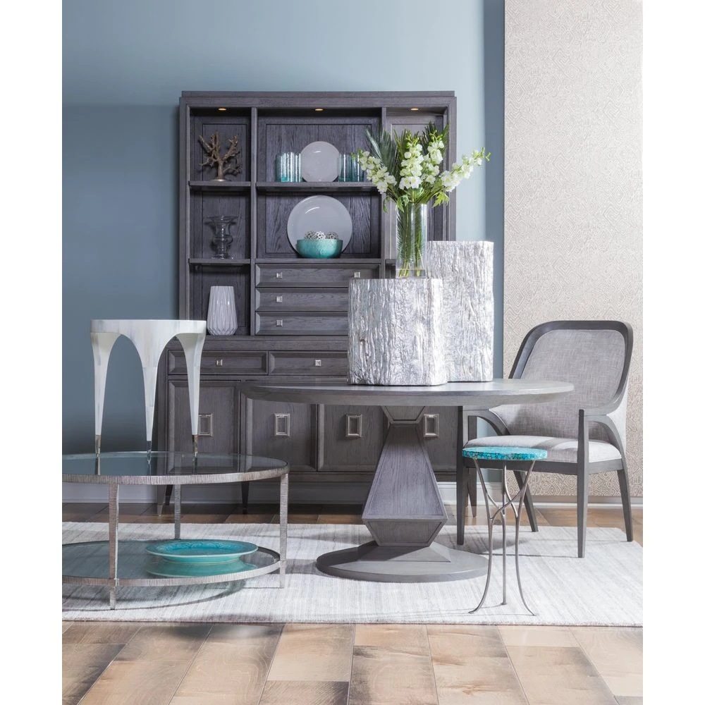 Marketing Copy: Appellation is a portfolio of original designs that showcase New Traditional styling, crafted from white oak, gently wire-brushed by hand, and finished in a sophisticated misty gray palette. Statement hardware and distinctive metal accents feature a soft brushed nickel finish that enhances the clean architectural lines of the collection. The look is one of understated elegance, featuring unique dining and occasional designs that define luxury living today.