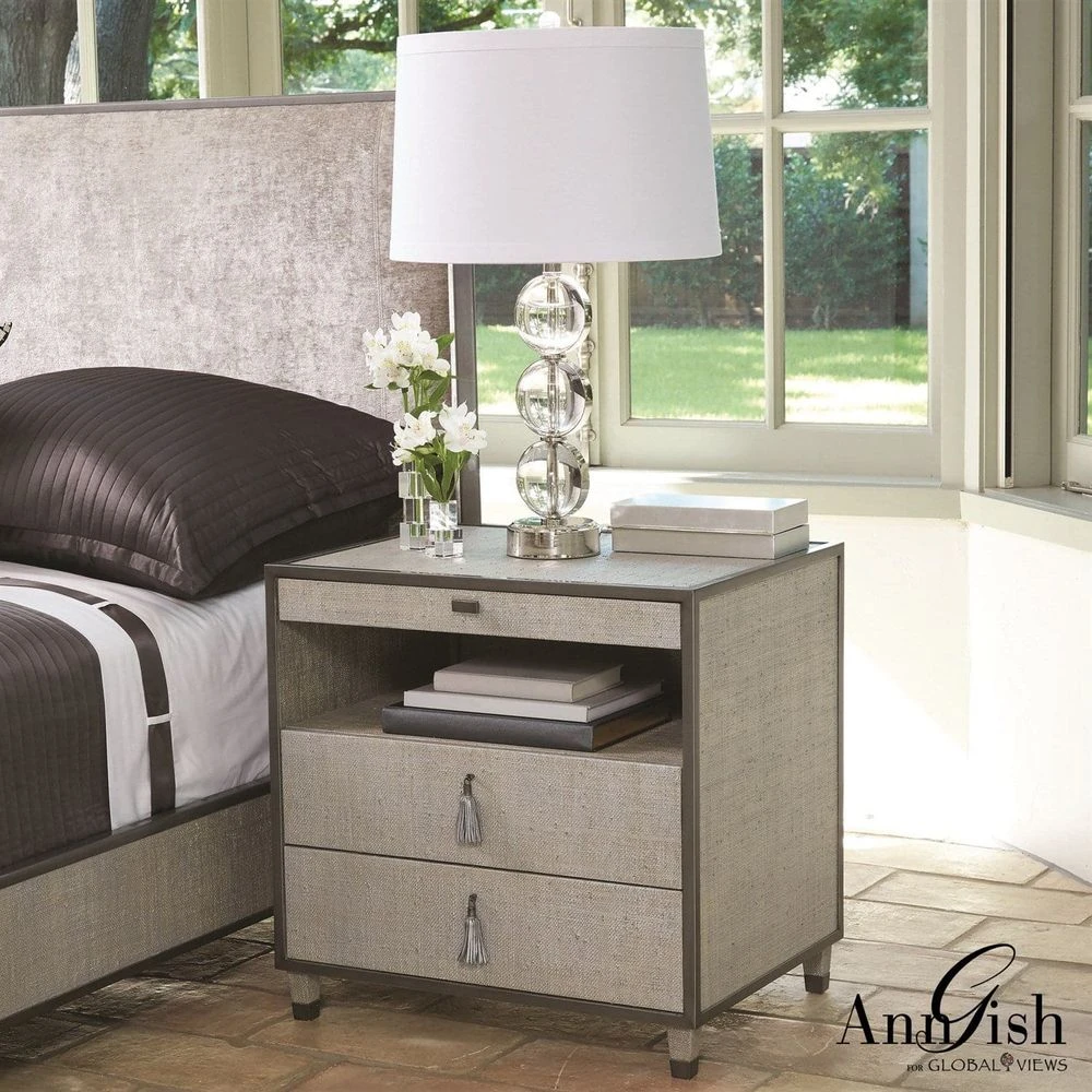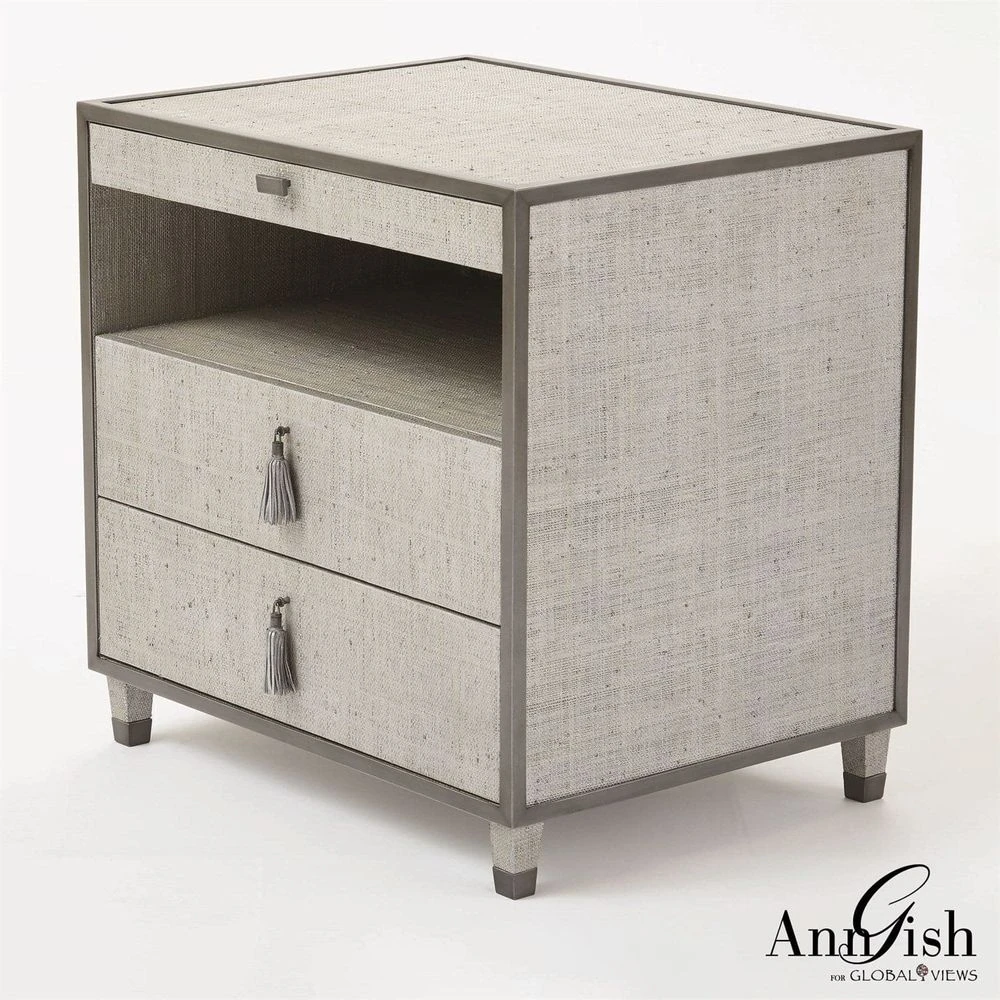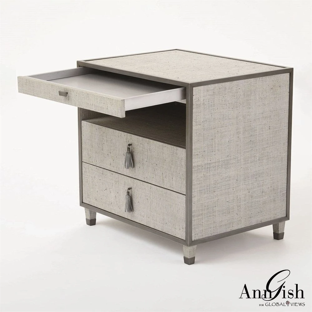 The Argento collection is inspired by finely textured, intricate Florentine silverwork, mixing soft shine and modern silhouettes. Each piece mixes silvered raffia coverings with pewter metal trim.