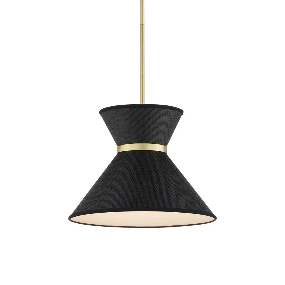 Description: The Avignon Pendant was created by Suzanne Duin, who founded the Houston shop and design studio Maison Maison, and is known for a keen eye in sourcing authentic French antiques and home accessories from around the globe. Each piece in her line of woven light fixtures is handmade by artisans in Southeast Asia; the Avignon an example with black paper shades in a tight weave and steel in a polished brass finish. This chic pendant, suspended from a gold rod with a matching circlet at the narrowest point on the shade, brings both texture and French flair. Adjustable from 19″ to 61″ with use of included chain/rod kit/cable. If your space calls for a longer drop, additional chain/rods/cable is available for purchase.