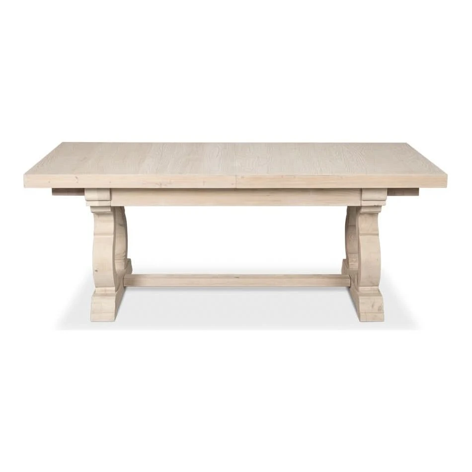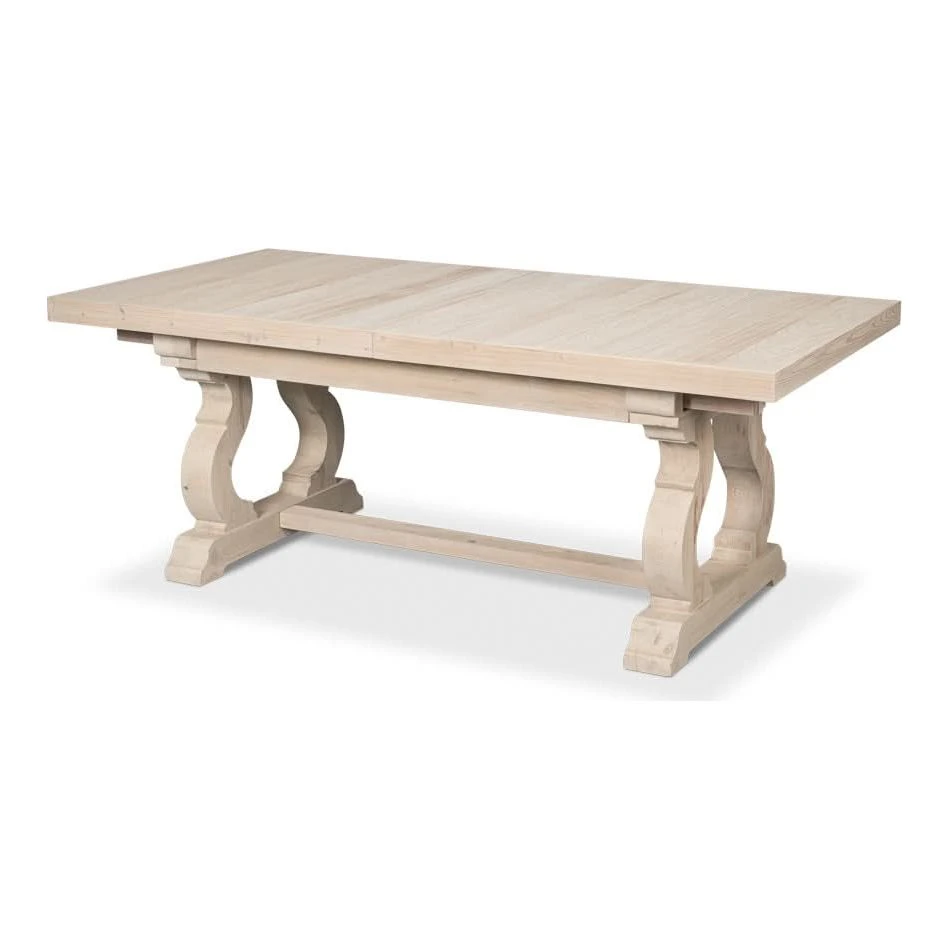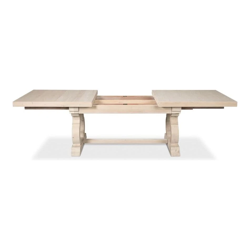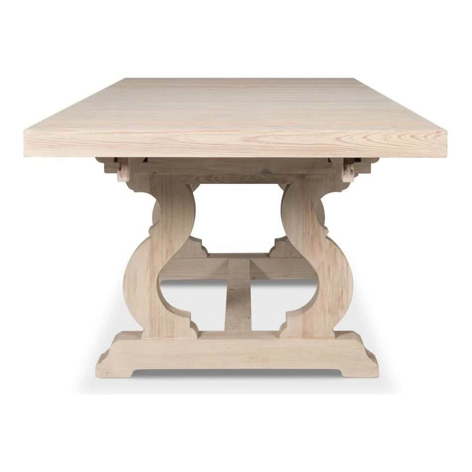 The Beauford table. Recliamed white pine in a distressed grey and white finish creates a rustic farmhouse look. Perfect for gatherings, it offers a charming centerpiece for your dining space.