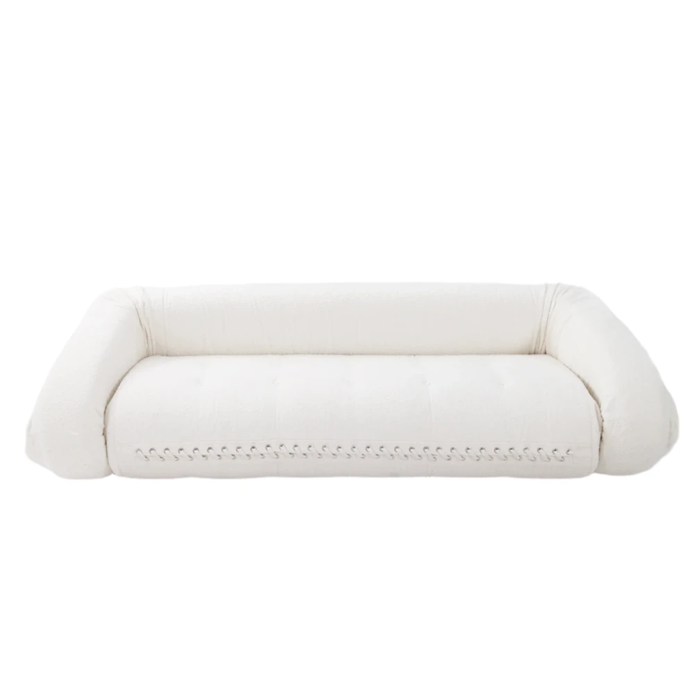 Indulge in the timeless allure of Italian inspired design with our Becchi Sofa Bed, a stunning piece that takes cues from the iconic Anfibio Sofa. This sophisticated sofa bed seamlessly combines modern aesthetics and unparalleled functionality, providing you with a versatile piece of furniture that will be the focal point of your living space. This sofa bed, like its muse, transforms into a comfortable bed with remarkable ease. Its innovative design allows you to transition from a stylish sofa to a cozy bed in a matter of seconds. The perfect solution for accommodating overnight guests while saving space. The sofa is enveloped in premium off-white boucle fabric, known for its softness and durability. This fabric not only adds a touch of opulence to your living area but also provides a cozy, tactile experience.