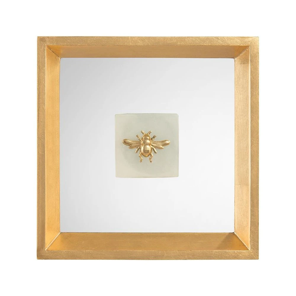A brass bee on translucent alabaster is mounted on a mirrored background. The surrounding gold frame has wonderful depth, giving added dimension to this lovely piece.