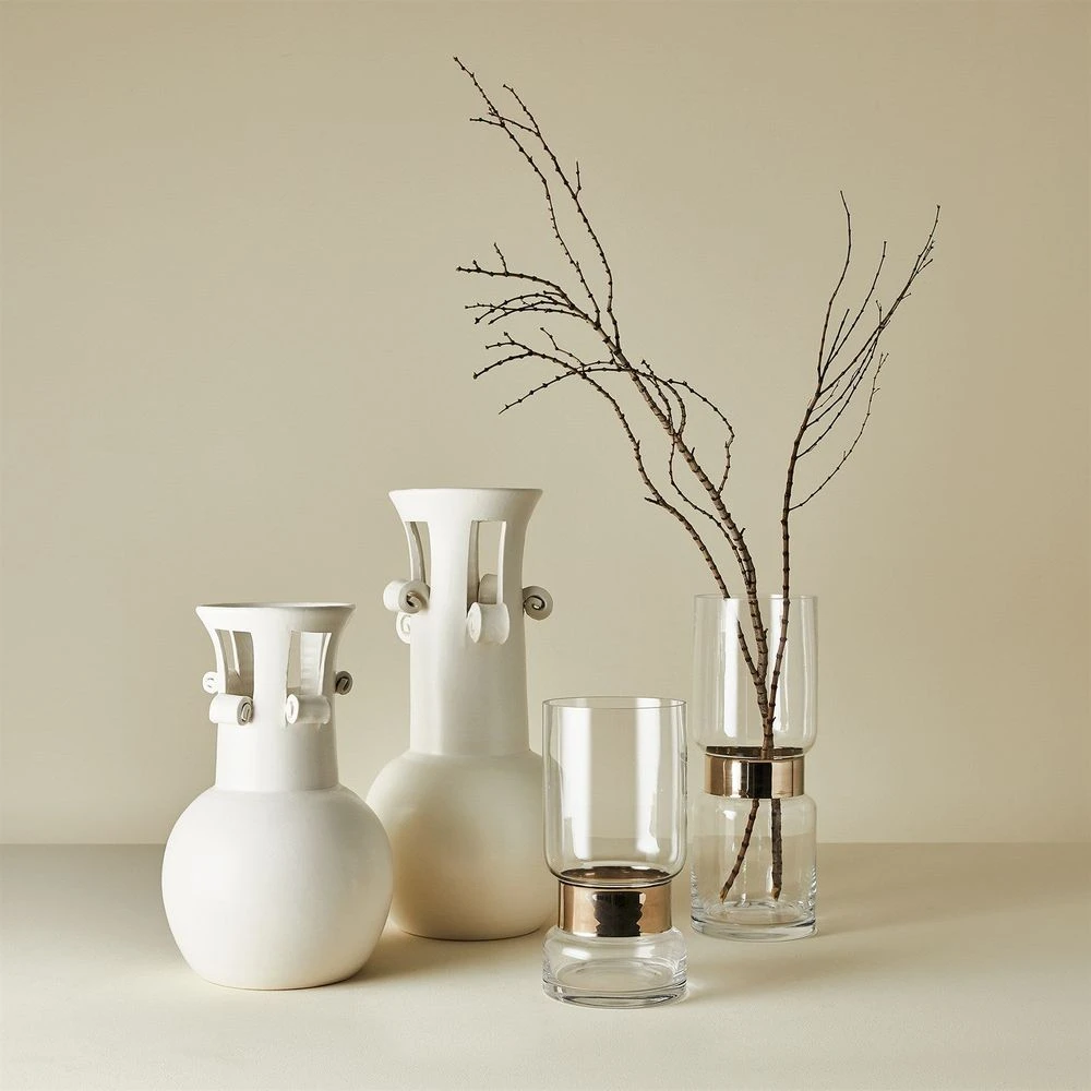 Description: The Belted Hurricanes, elegantly crafted from mouth-blown Polish art glass, are adorned with meticulously hand-painted 22K platinum details. To ensure lasting brilliance, each piece undergoes a careful ultraviolet light curing process that securely adheres the platinum paint to the glass.