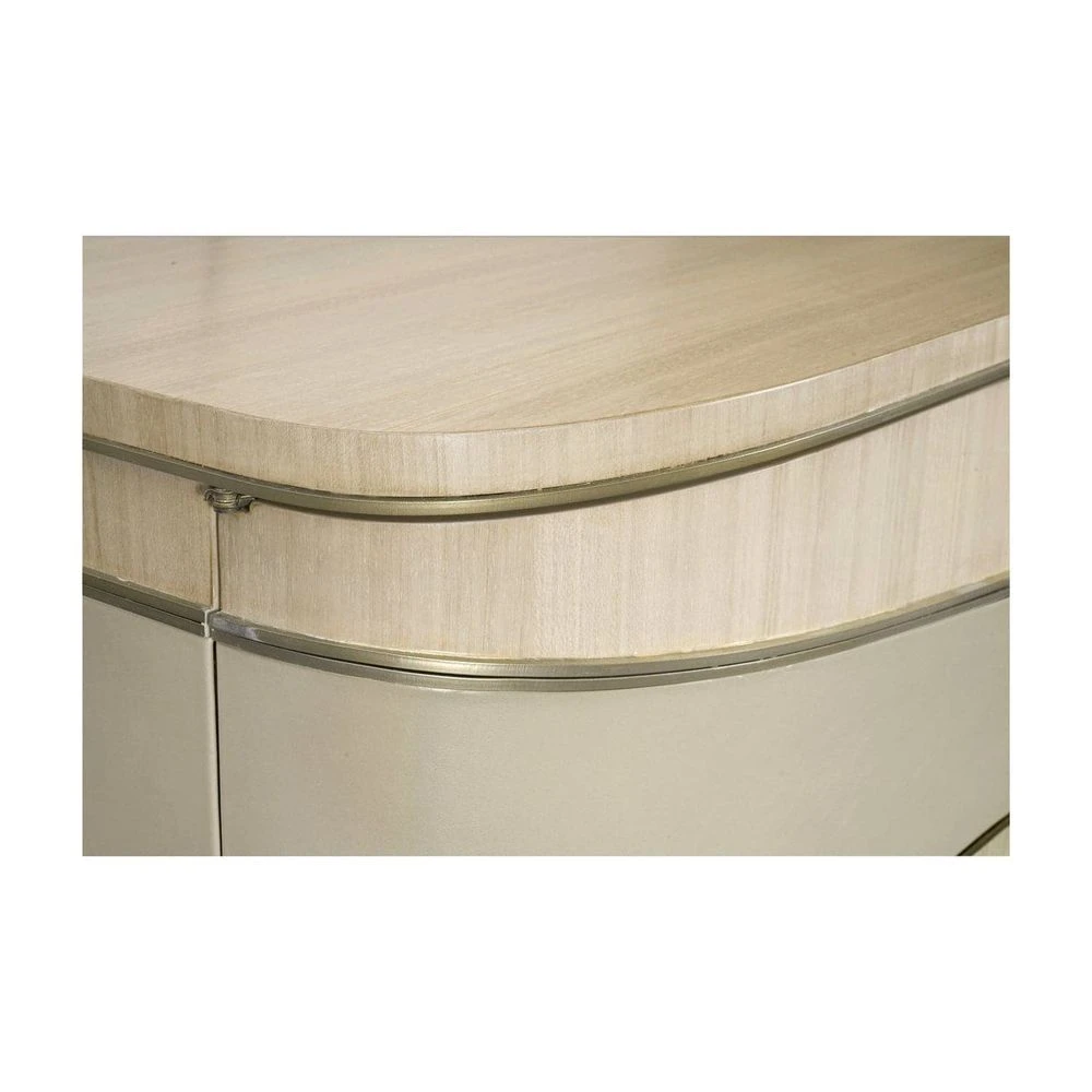 Featuring a streamlined profile and eclectic mix of organic materials, the breaker console strikes a mesmerizing pose. Sinuous waves formed with creme leather, light wood and natural bone inlay are accentuated by delicate, glinting metal spines. Breaker’s spectacular design coupled with Jonathan Charles’ hand-crafted construction ensures quality and distinction.