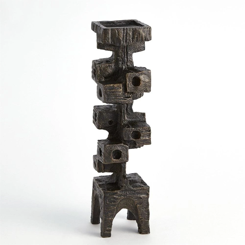 The Brutalist Candleholders are made of sand casted iron and has a bronze finish with gold highlights.