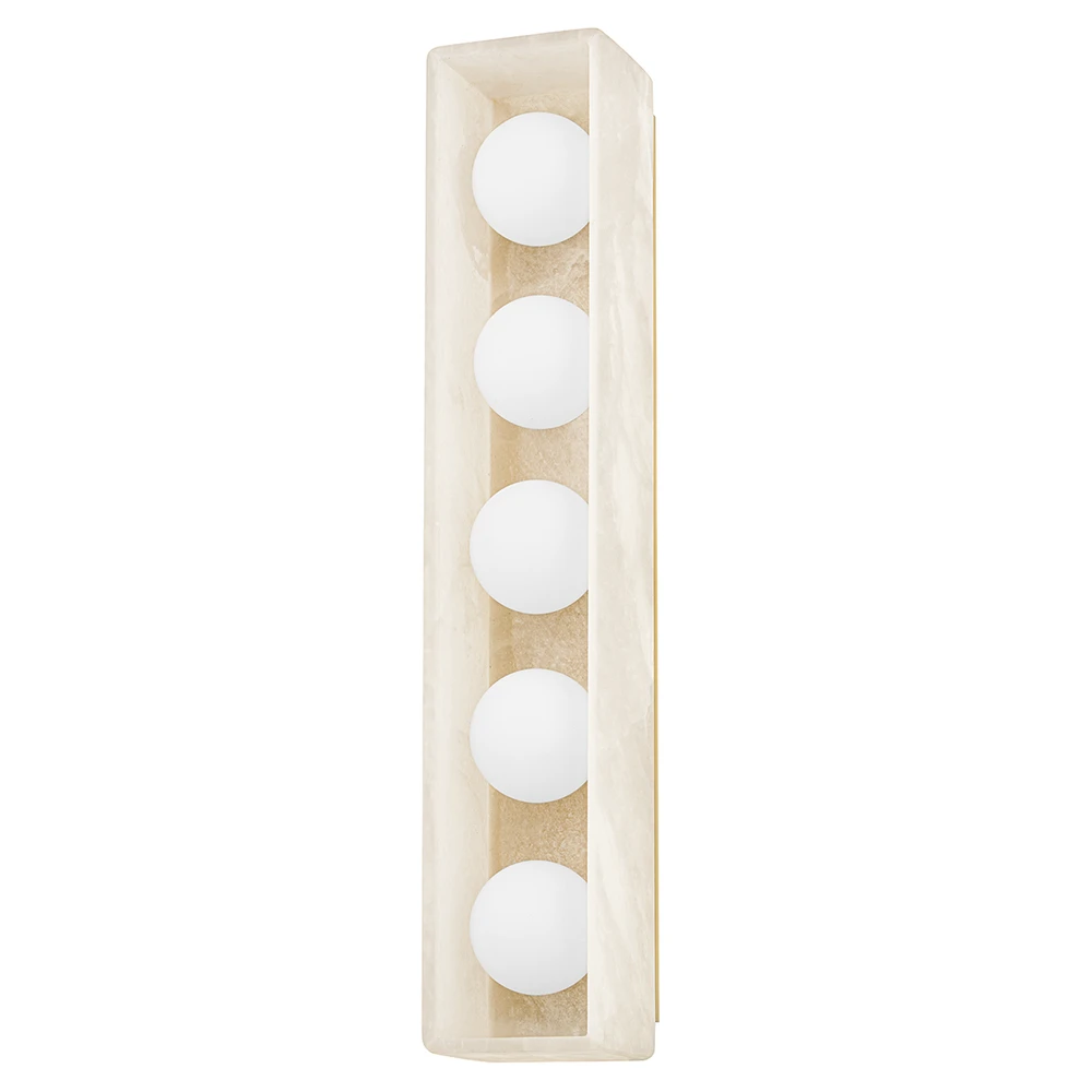 Budnick meets at the intersection of natural and modern, blending forms and materials with steady ease. The juxtaposition of round and square, aged brass and alabaster is the type of material mastery we have come to love. Available as a 1-light, 3-light, and 5-light wall fixture, the real beauty comes from the warm ambient glow which emanates from every angle of the alabaster shell.