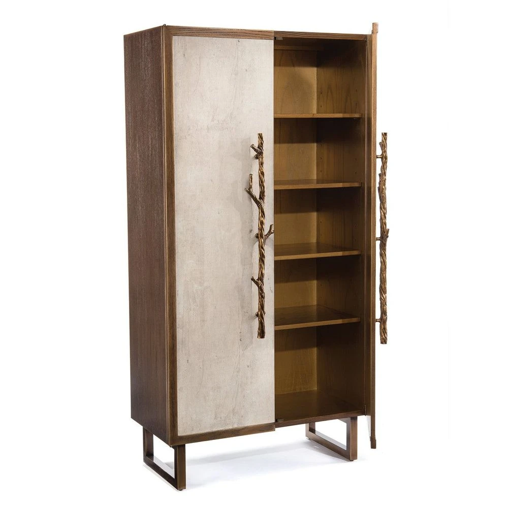 Description: The tiza gesso doors are set in a golden oak case. The handles are cast to look like branches, and they are finished to complement the case.