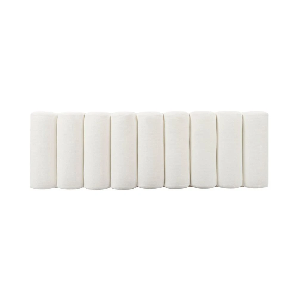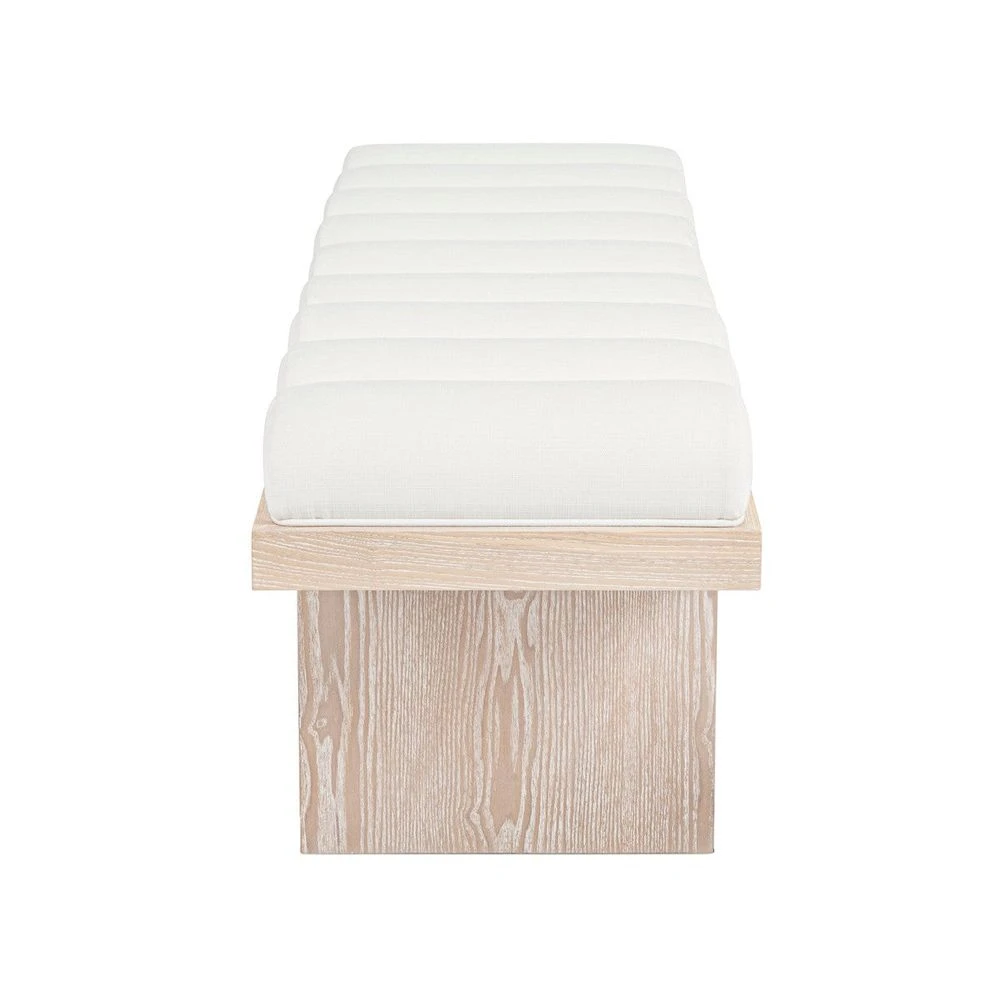 Description: CHANNELED SEAT BENCH WITH CERUSED OAK BASE IN PERFORMANCE WHITE LINEN