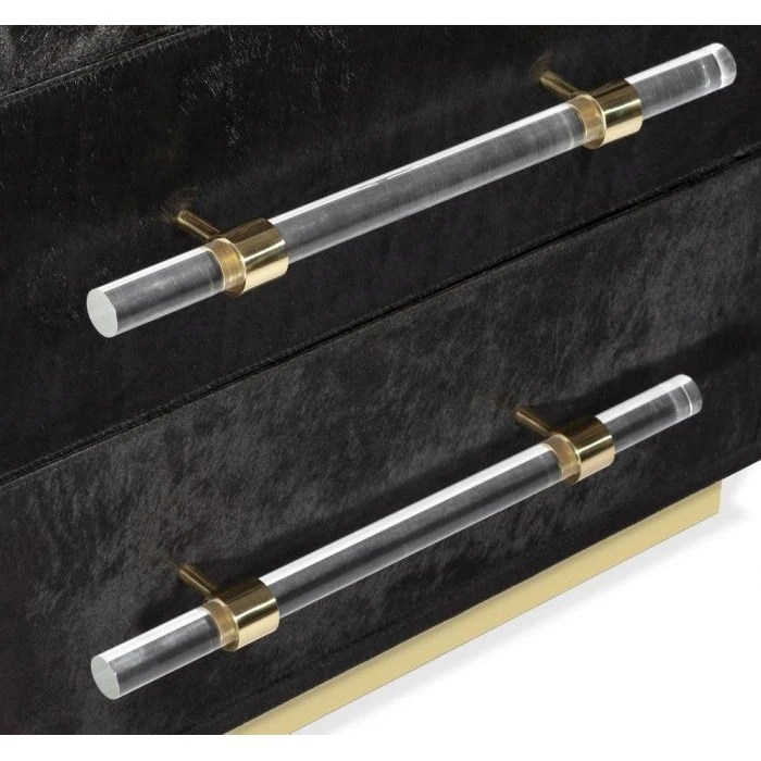 Boasting black hide with clear acrylic pulls and shiny brass accents, the Cassian Chest brings an unexpected, fabulous twist to a storage staple.