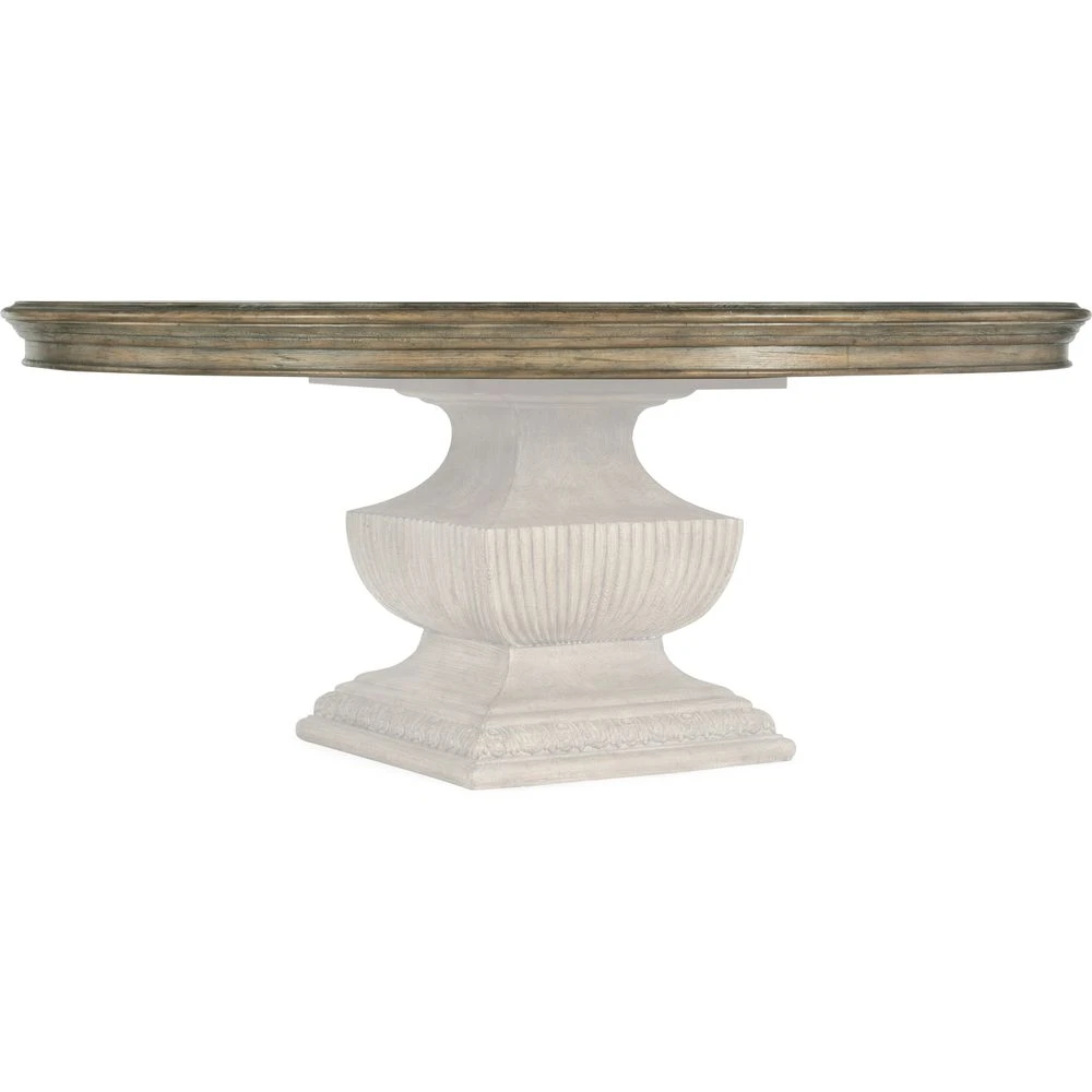 The stunning 60-inch Castella Round Dining Table brings together classic design elements, grand scale and a refined rustic finish with the look of natural wood bathed in sunshine to create a livable resort feeling for your dining setting. The classical urn-shaped base anchors the piece in old world charm, while the Antique Slate finish with a beautiful patina updates it for today’s relaxed styles. Will seat up to six guests. Commanding attention in any space, the impressive scaling of the Castella Collection combines with classic design elements including scrolls, serpentine shapes, rope twist molding, acanthus leaf details and fleur-de-lis accents to create old world charm. Infused with emotion, the collection’s exuberant scale and timeless motifs define its casually opulent style. Presented in an updated mid-tone brown finish with a beautiful patina, Castella offers Classic European design with an updated twist.