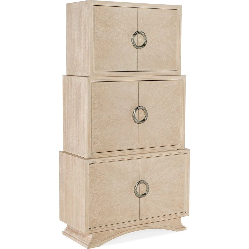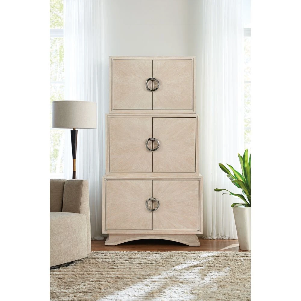 The Nouveau Chic Collection is a casual modern group drawing inspiration from the curvaceous yet uncomplicated designs that are popular today. Nouveau Chic unites classic architectural elements like cathedral and quartered oak, movement of soft shapes, metallicized shagreen, and polished metal accents to create a dramatic yet easy modern aesthetic.
