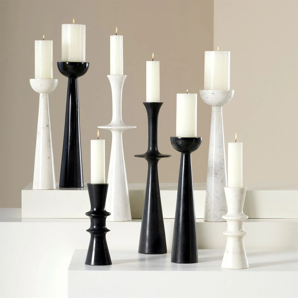 Description: The Center Flair Candle Stand is made of hand formed marble with a iron candle spike.