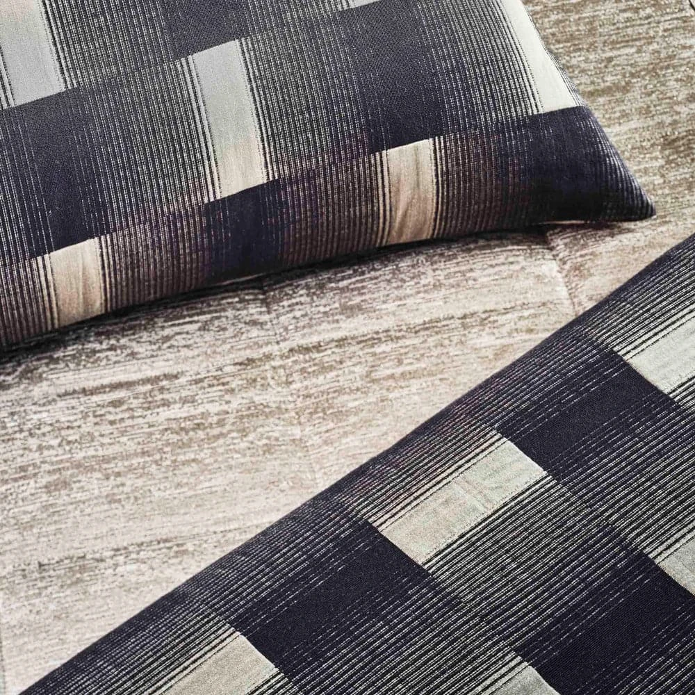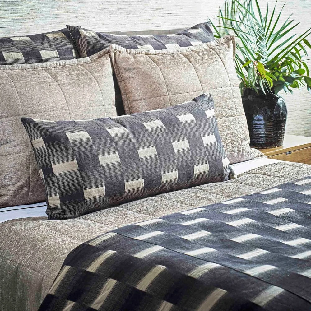 Shadows across the sandstone and volcanic rock of Big Bend National Park inspired this bronze & black jacquard. Color transitions are reminiscent of louvered windows, with colors alternating as they shift.