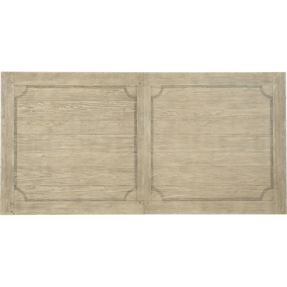 Be transported to a romantic, rustic Italian farmhouse as you dine around the Ciao Bella 84-inch Trestle Table. The base has turned legs and an exquisite black finish with hand-chiseling and wire brushing, and contrasts with a Flaky White top. The two 18-inch leaves extend the table to 120 inches, accommodating up to 10 guests. Beautifully crafted of Poplar Hardwood Solids with Pine Veneers. Inspired by the small farmhouses that dot the French and Italian countryside and have been in the hands of the same family for generations, Hooker Furniture introduces the rustic Ciao Bella Collection. The whole home collection is an eclectic mix of European farmhouse pieces that have the appearance of furniture that has been refinished multiple times as it has passed through the generations. Ciao Bella includes bedroom, dining room, occasional, home office and accent furniture, and features a finish called Timeworn Gray that accentuates the historical nature of European farmhouses – many of which include a variety of furniture styles that have been added by each generation of owners.