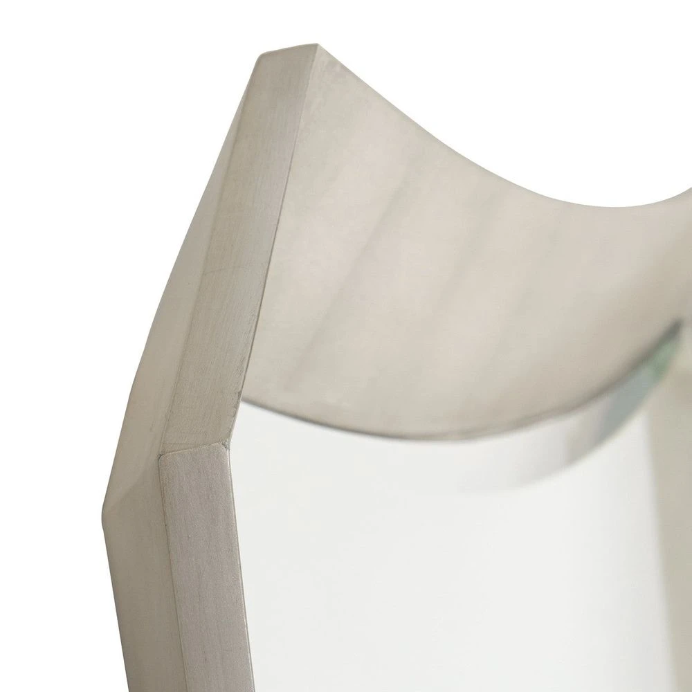 Description: A simple and beautiful rectangular mirror framed in our Bright Silver Leaf with clear mirror and bevel. This mirror is prepared to hang in a portrait or landscape orientation.