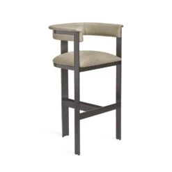Boasting an art moderne influence, the Darcy Bar Stool features a fawn taupe leather seat and a streamlined stainless steel frame in a graphite finish.