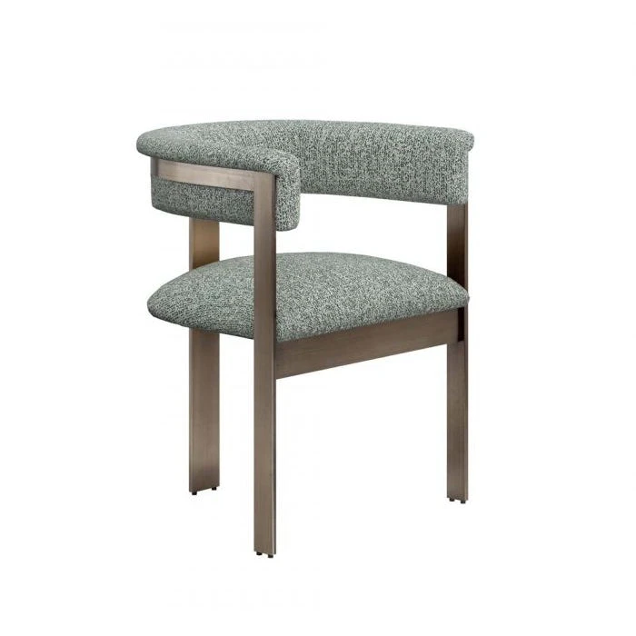 Boasting an art moderne influence, the Darcy Dining Chair features a black and white spotted hide seat and a streamlined stainless steel frame in a matte black finish.