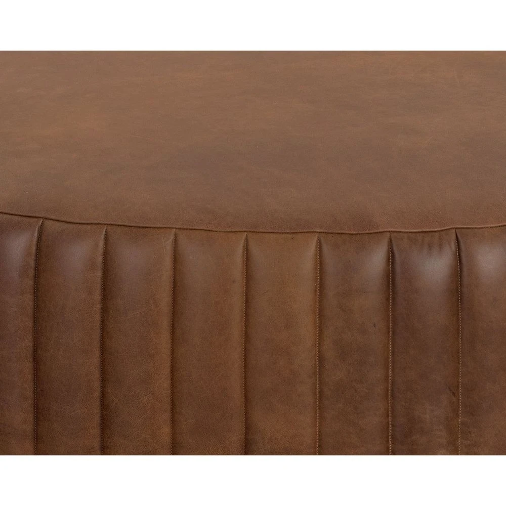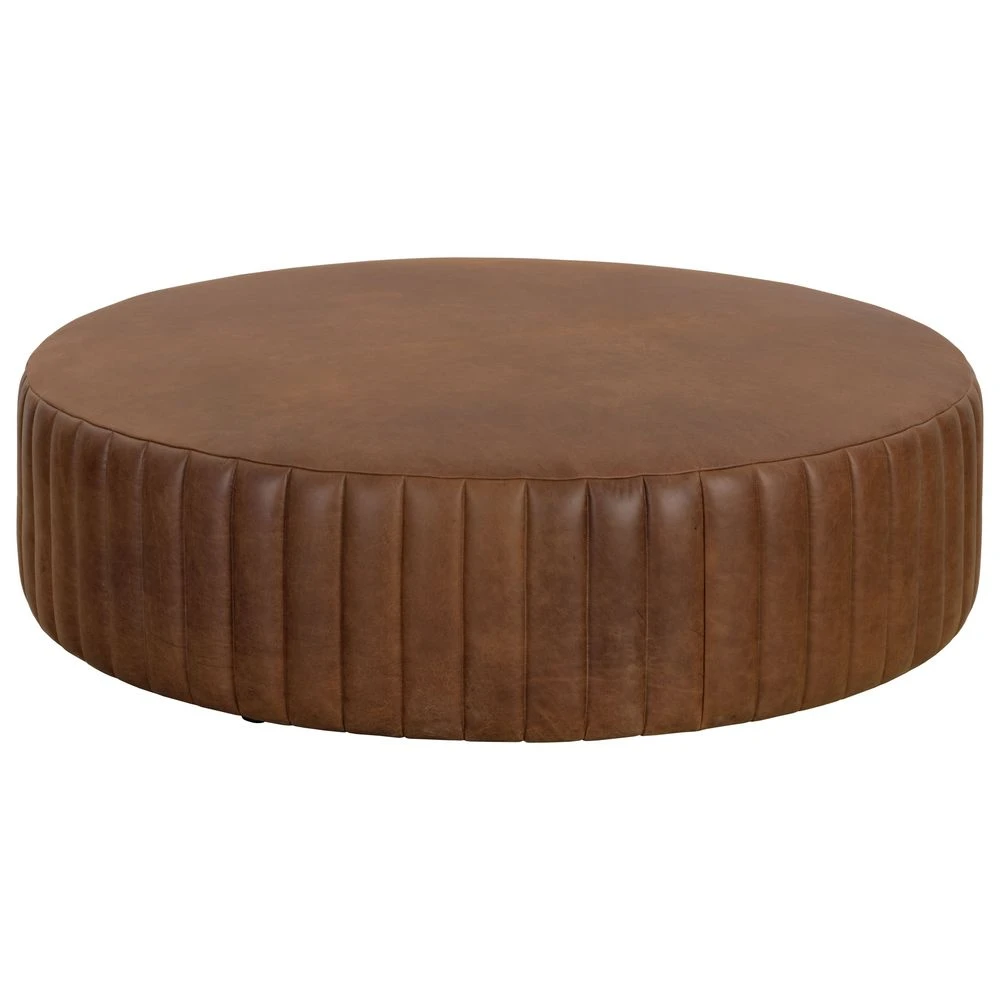 Description: The Divano Ottoman is a versatile piece that adds a touch of comfort to any space. Features a simple round silhouette upholstered in our luxurious Lucia Tobacco Italian leather. Vertical channel tufting across the sides creates added dimension to the piece. Handle with Care: This design has been crafted with 100% aniline leather. Leather is a natural material; as such, colour variations, markings, wrinkles, grooves and light scratches are acceptable and appreciated characteristics. No two pieces are alike. Visit our Product Care page for more information on how to ensure the lasting beauty of this piece.