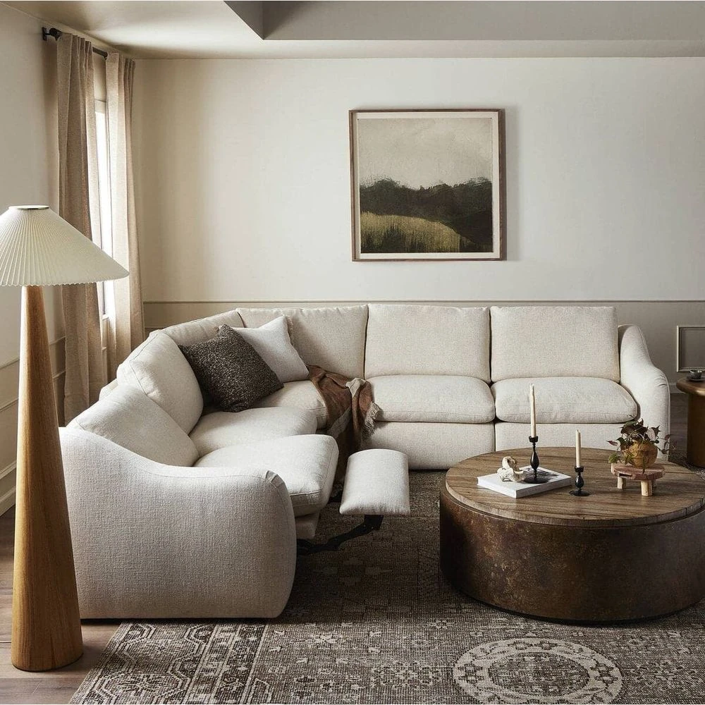 A fresh take on the classic recliner sectional. Customize your comfort level with the push of hidden summarys with pieces in our Power Motion collection. Sculpted in light, versatile high-performance fabric. Performance fabrics are specially created to withstand spills, stains, high traffic and wear, ensuring long-term comfort and unmatched durability. Includes 9’5″ power cord. There is a six-motor maximum per power outlet. Each motor comes with a two-year warranty.