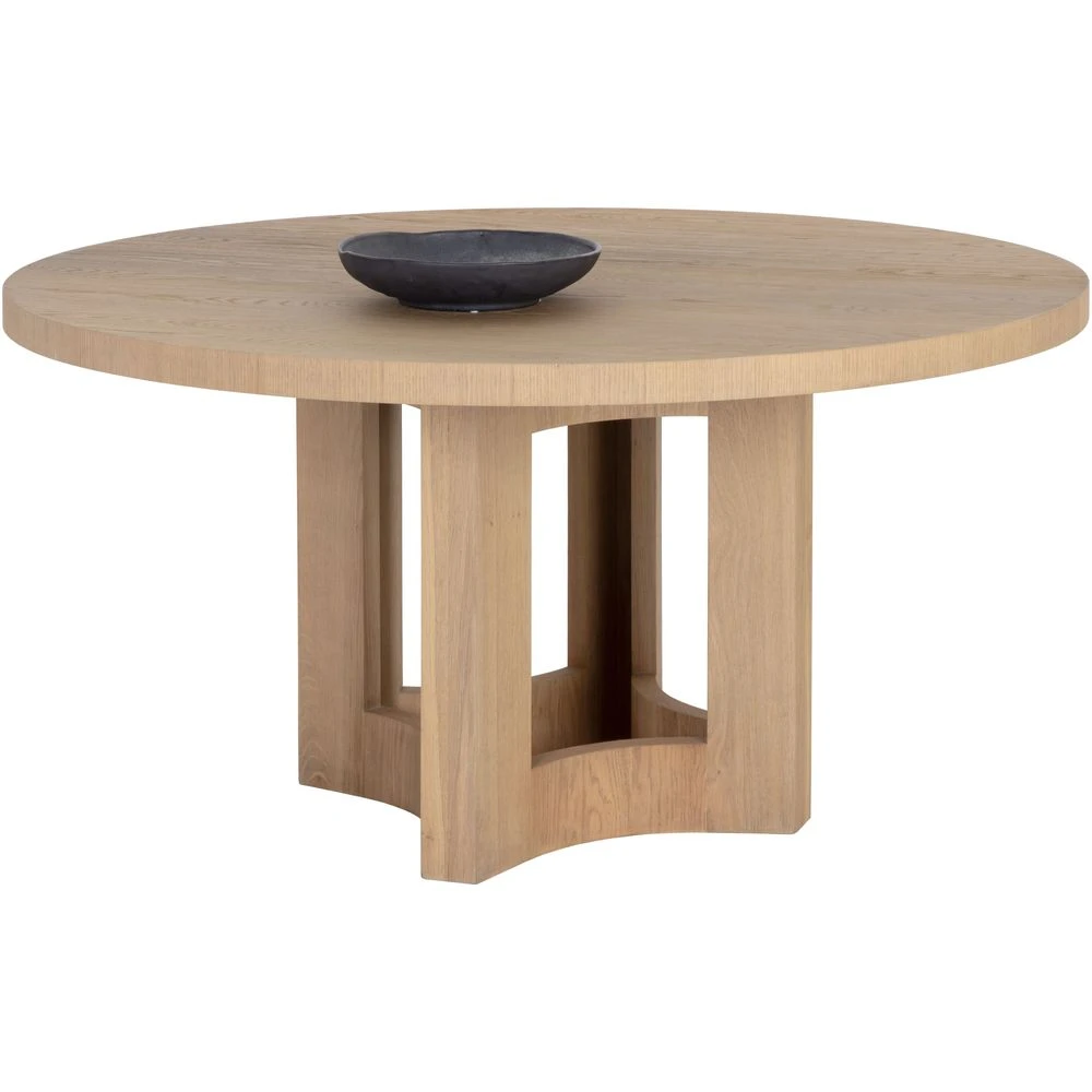 Description: Beautiful and timeless, this mid-century modern dining table is a great addition to any dining space. Features a table top and base crafted from natural wood with a natural oak veneer. Also available in an ash grey colour.