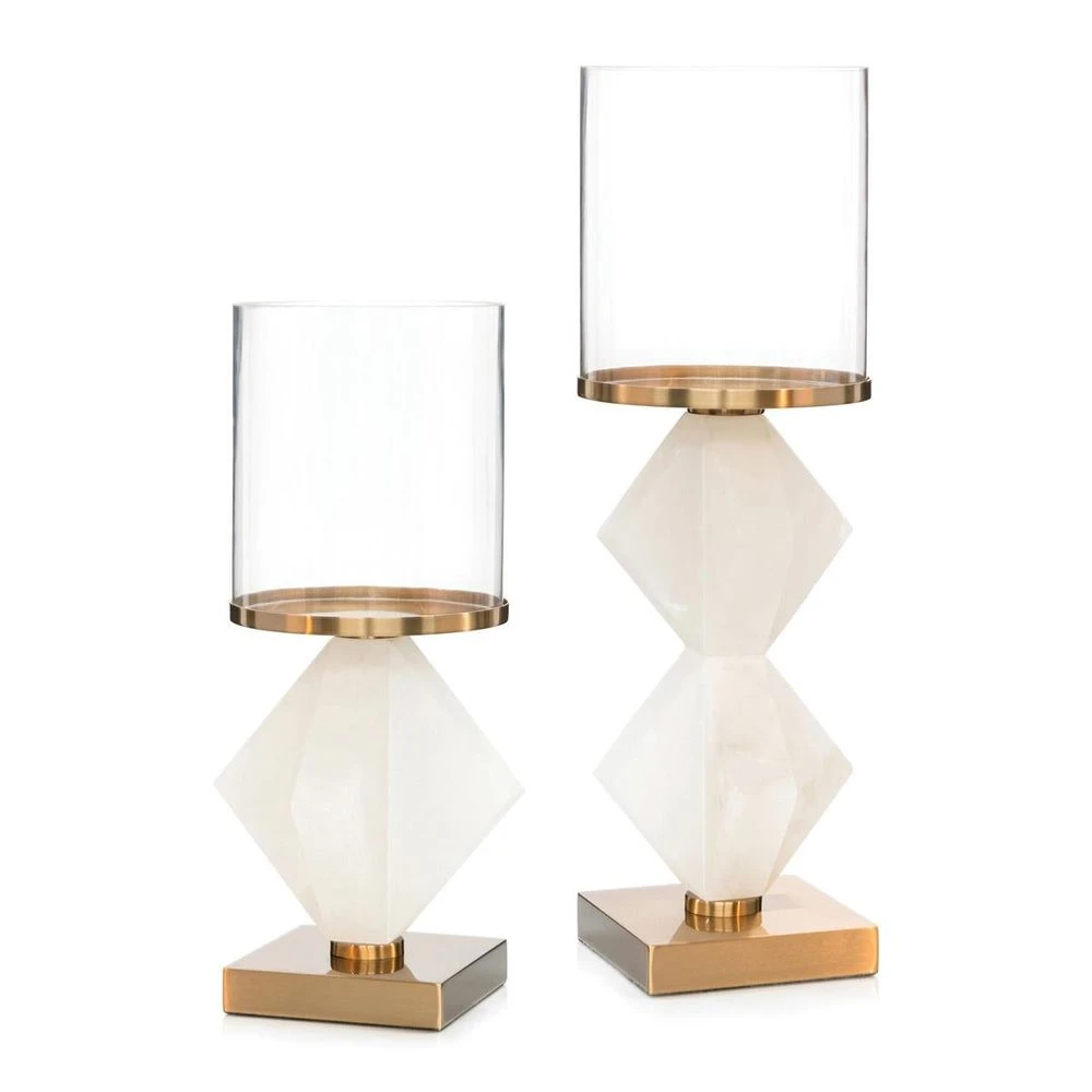 Description: Candlelight will twinkle and sparkle from inside this glass globe held by an alabaster and coffee bronze base.