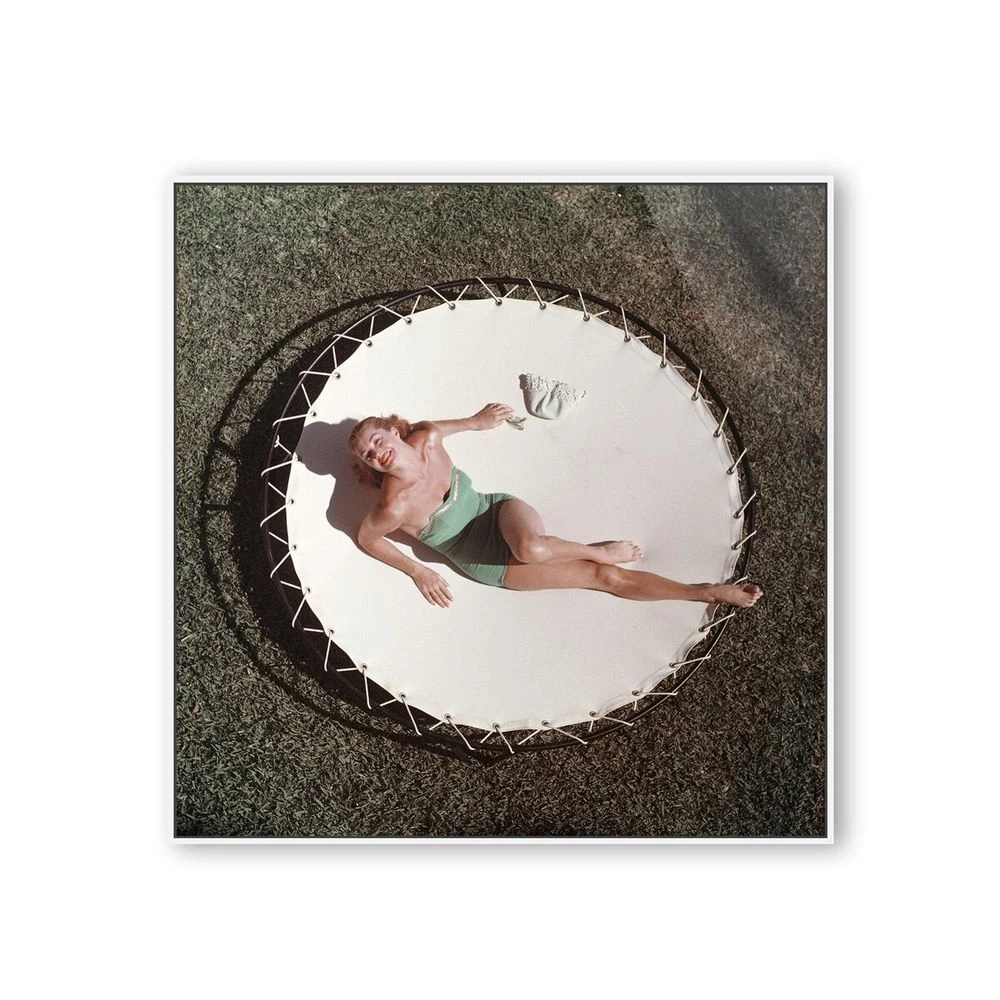 American swimmer and actress Esther Williams (1921 – 2013) lounging on a trampoline, circa 1956. This specially selected work from the late influential photographer Slim Aarons is printed using ultra-modern ChromaLuxe technology for the first time ever. High in definition and gloss, images are printed in vibrant, saturated color on fade- and scratch-resistant recycled aluminum. Each is float-mounted with hand-selected framing designed to complement the print. Handmade in Austin, Texas, each piece includes a certificate of authenticity commemorating the partnership between Slim Aarons, Getty Images Gallery and Four Hands Art Studio. Photo courtesy of Getty Images.