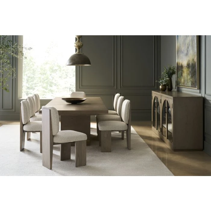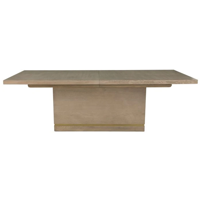 Crafted of red oak solids and veneers, our Everett Dining Table features a thick plank top resting above a solid rectangular base, accented by an inset metal band for added warmth. For added seating capacity, the tabletop expands from 96″ to 120″ wide with one 24 leaf (included). Stocked in Biscotti, Everett is also available in 40+ additional custom finishes via our Monogram Program.
