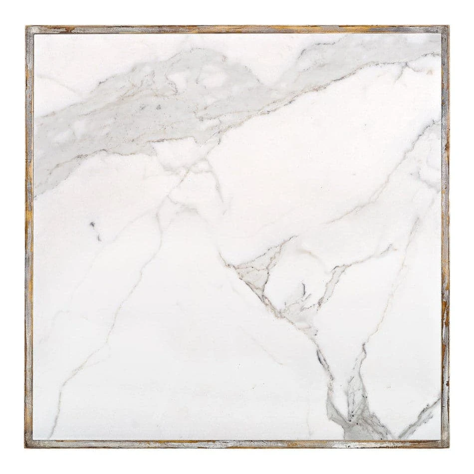This is a lovely and practical table. It begins its life as a square but adjusts over time and becomes a quite large rectangular table. A leaf on each end pulls out making a rectangular dining table that will accommodate 6 to 8. Lovely porcelain marble top.