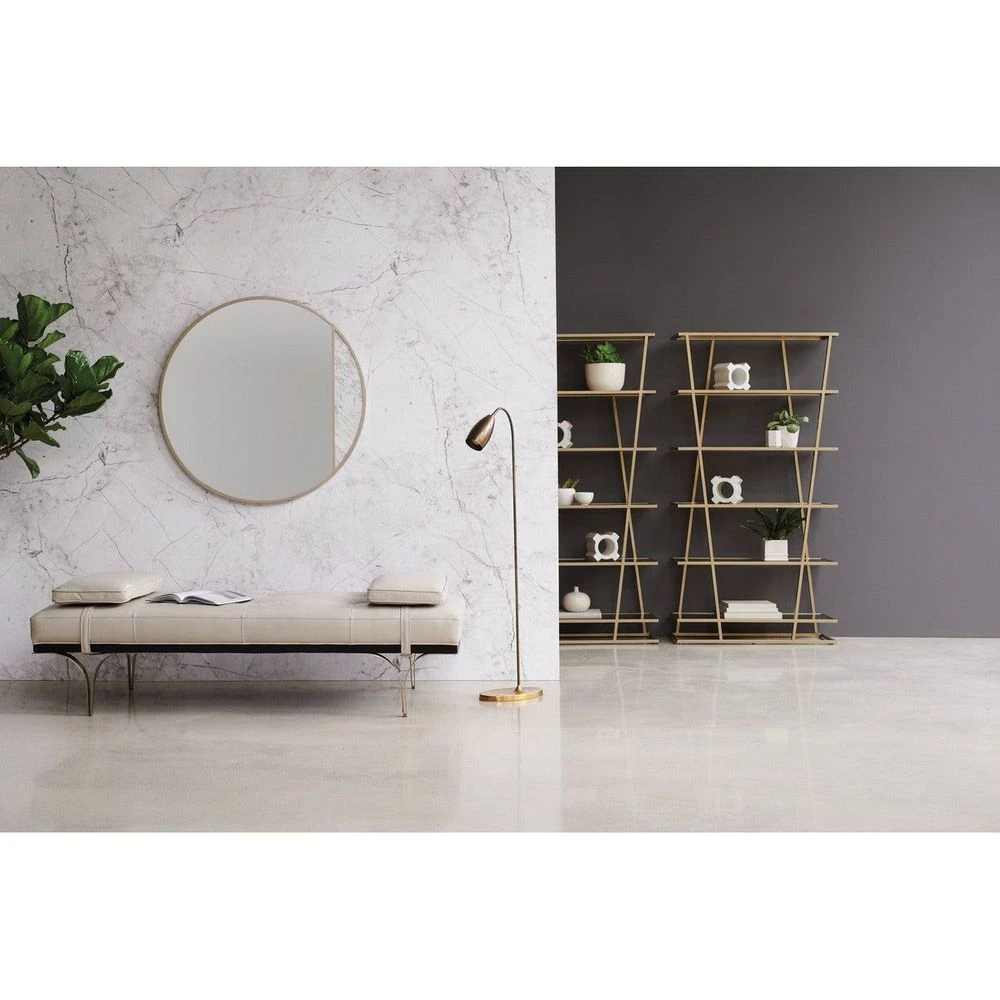 Designed for daydreaming, this daybed is truly lounge-worthy. Clean lines and elegant tailoring distinguish its appearance and are enhanced by a semi-aniline cover tufted in a modern grid pattern. A plush pillow highlights each end of this brilliant piece and can be secured or removed with ease. Metal V-shaped legs finished in Whisper of Gold elevate this daybed while lending an airy openness to its overall appearance. Designed to flatter every space, this special piece delivers a look you’ll love for years to come.