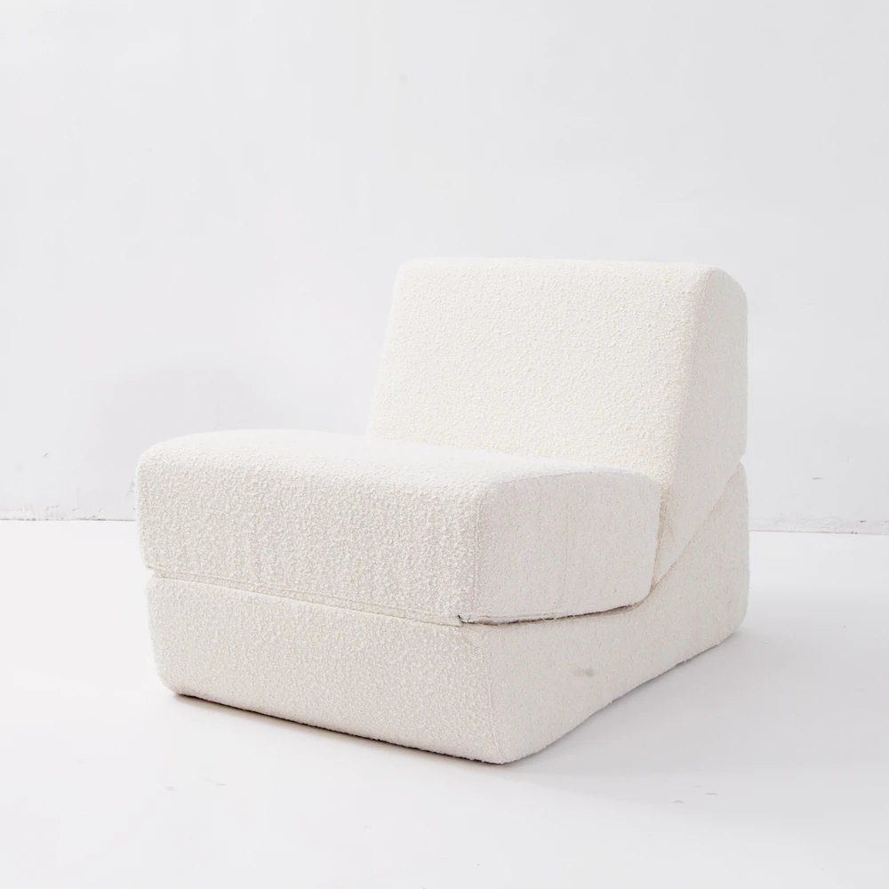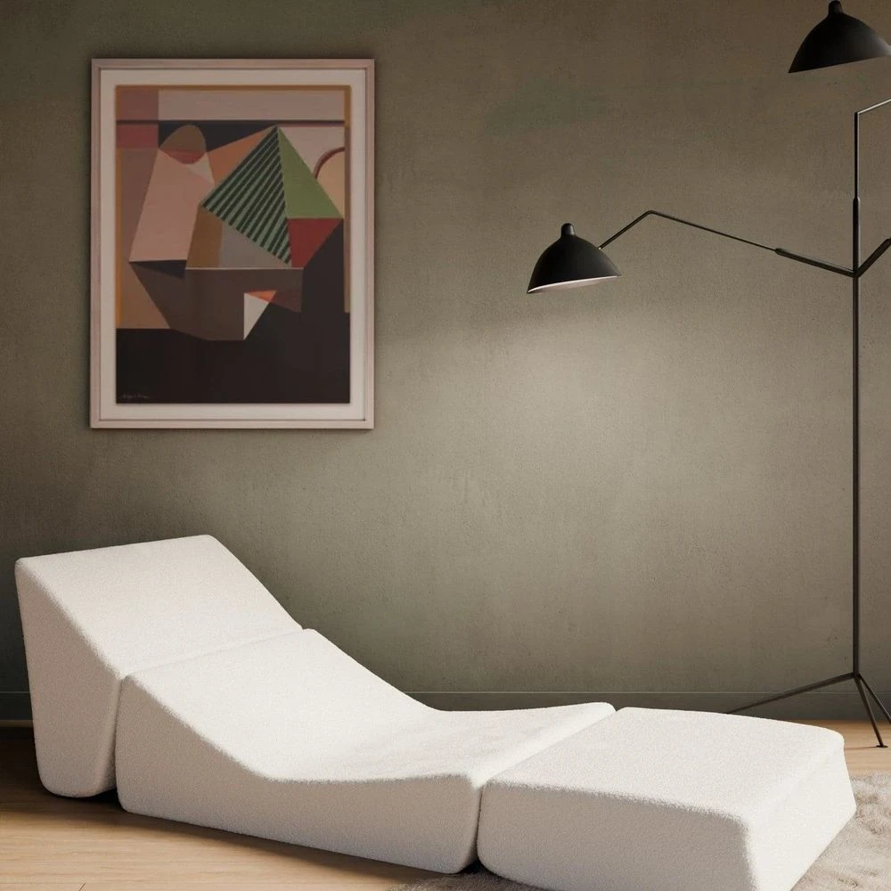 Experience the perfect harmony of timeless sophistication and modern comfort with this transformable lounge chair, a masterpiece that pays homage to the iconic Galeotta lounge chair from 1960s Italian design. The chair brings the allure of mid-century Italian design into your living space with a contemporary twist. This is a lounge chair that can be easily turned into a chaise longue or a daybed. Featuring a plush, generously padded seat and backrest upholstered in a sumptuous off-white bouclé fabric this chair is a dream to sink into. Designed for ultimate relaxation, it offers the perfect blend of support and softness for hours of comfortable lounging.