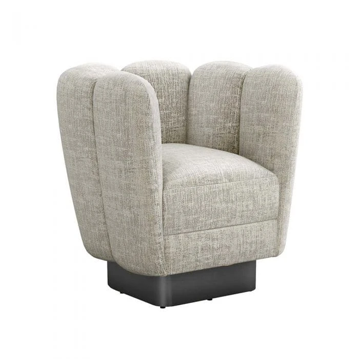 Offered in a range of luxe fabrics, the plush Gallery Swivel Chair makes a glamorous, Art Deco-inspired statement.