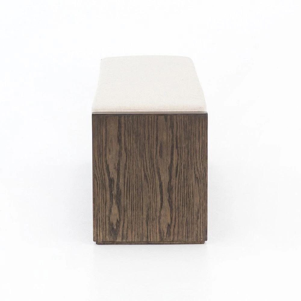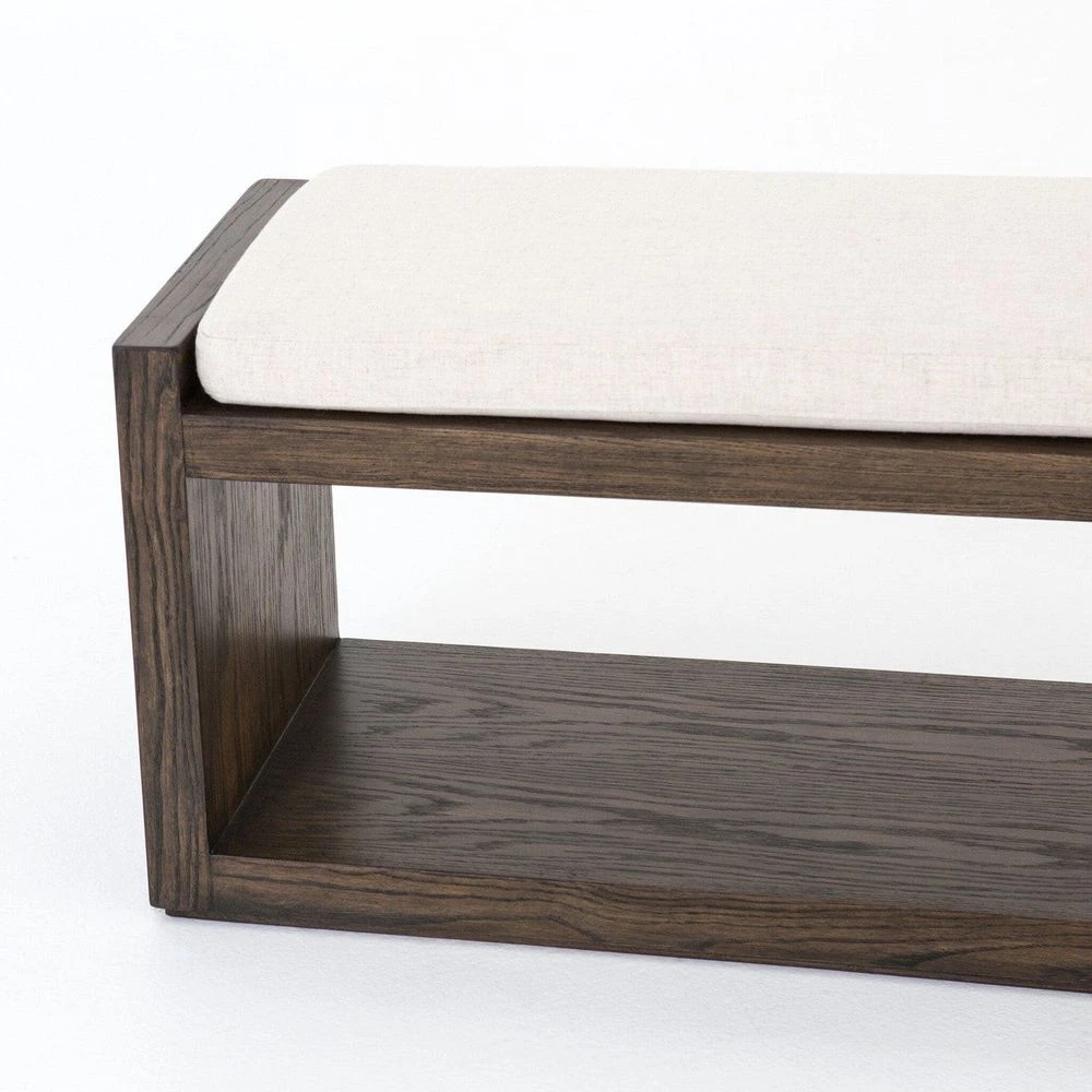 - Description: Mixed materials and open styling allows for versatile placement options. Warm cedar-finished nettlewood forms clean lines to support performance-grade seating in a neutral flax. As perfect for dining as in entryway.