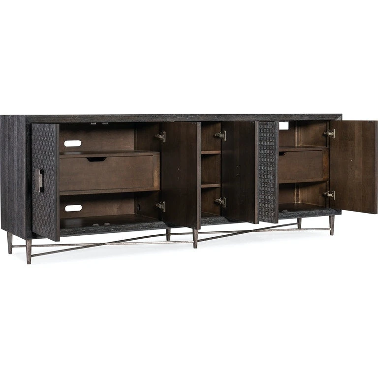 - Finish: Dark wood finish with silver metal base and distressed metal rectangle hardware.