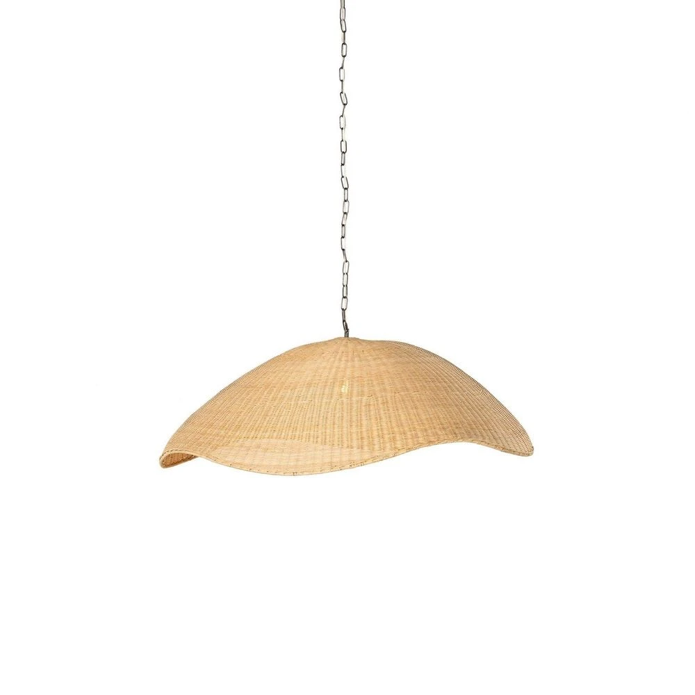 - Description: Make an organic style statement with an overscale pendant made from handwoven rattan. Gunmetal-finished iron chain for a spare, light look with complementary contrast of scale.