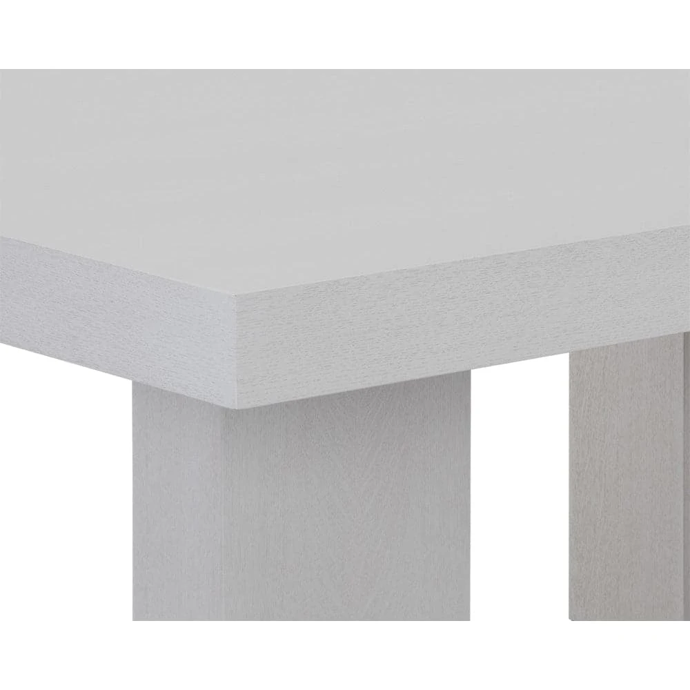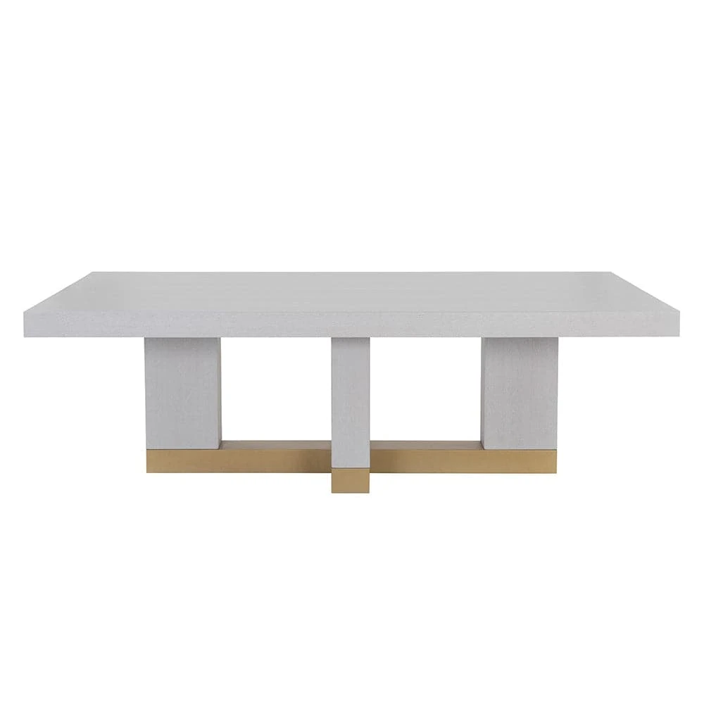 Create a dining space full of futuristic appeal with this contemporary dining table. Features a gaunlet grey wood veneer table top with solid poplar wood legs. Completed with an accenting rustic bronze metal base.