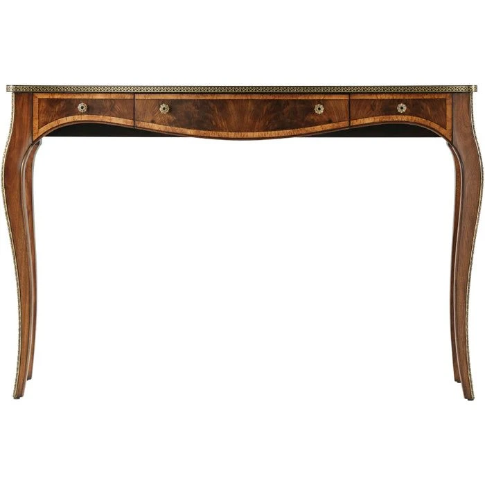 Seen here in our elegant Patrician finish, the larger scale Harper Console Table combines classic elements of Etimoe Crotch, Karelian Burl, and makore veneers with beautiful brass inlays. Theodore Alexander is shaped by English Heritage handcrafts furniture and accessories for your home with uncompromising quality. They also believe that the person who owns a piece of Theodore Alexander Furniture should take comfort in knowing the item can be viewed from any side and they have made the piece by using a time-honored, handcrafted method that is the true mark of high quality. Every piece of Theodore Alexander has a story just waiting to be shared.