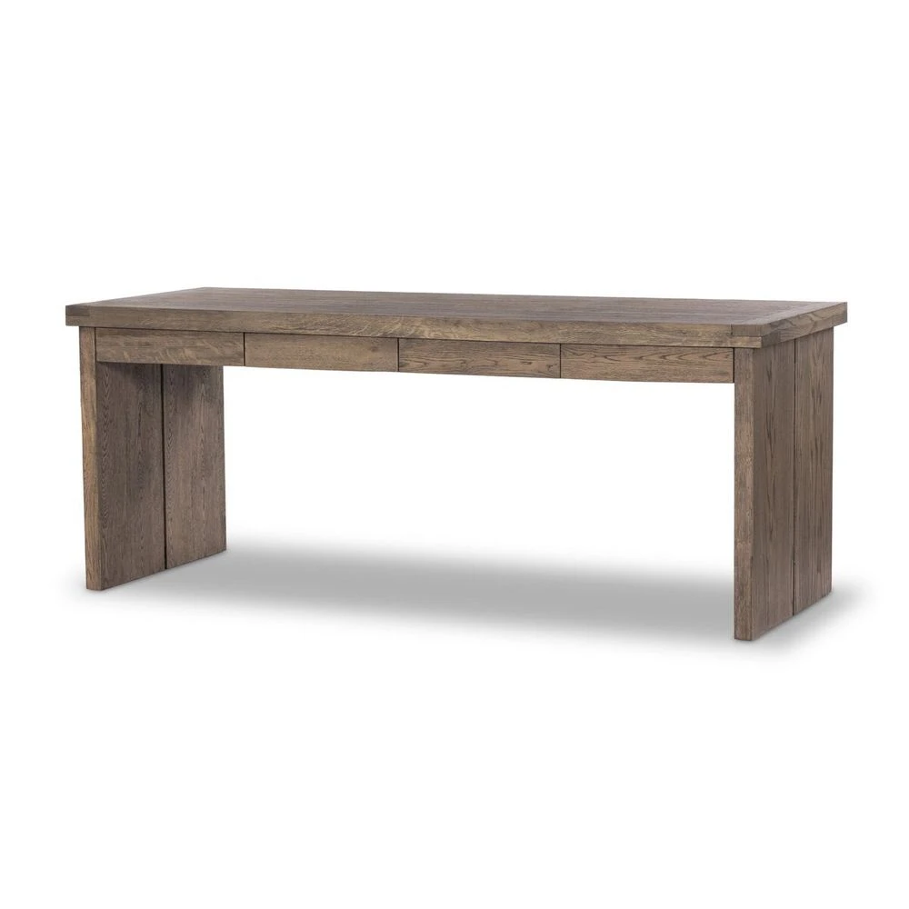 Worn oak shapes a streamlined desk with a naturally minimalist look. Four drawers for handy storage space.