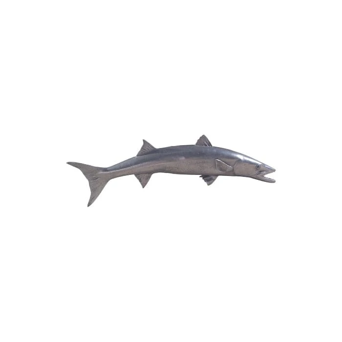 The Barracuda Silver Wall Sculpture is made of composite in a silver leaf finish. This likeness of the seafaring creature is a chameleon of style-hang it in a modern kitchen and it takes on a zesty panache; place it in a child’s bedroom and it will become a playful element in the space. Whether you have a lakefront home, a beachfront condo, or an urban oasis, the Barracuda Silver Wall Sculpture with its luminous finish will bring the watery world inside. Powerful on its own, group this sculpture in multiples to create a school of fish for added impact. We also offer this sculpture in a gray version. Each of these pieces of decorative wall art reflects the ethos that the Phillips Collection personifies: modern organic.