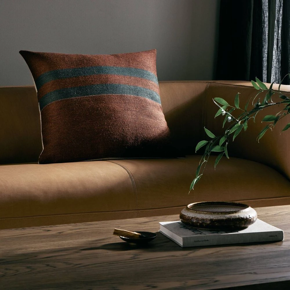 Classic navy bands give this tonal red pillow cover definition and style. Woven from flax-linen and wool yarns for rich texture. This throw pillow features sustainably made Belgian Linen‚Ñ¢. Naturally durable and soft to the touch, Libeco‚Ñ¢-sourced linens are artisan-made without toxic chemicals.