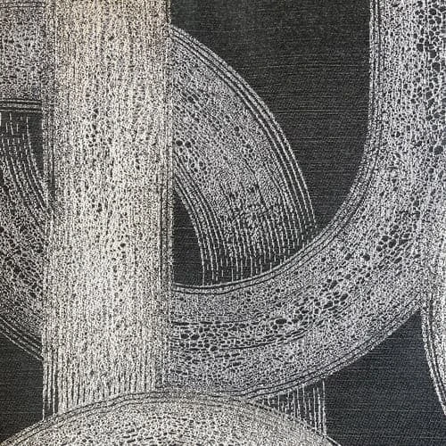 Metal toned strokes bedeck a black, taupe or pearl ground; depicting the curves of the road.