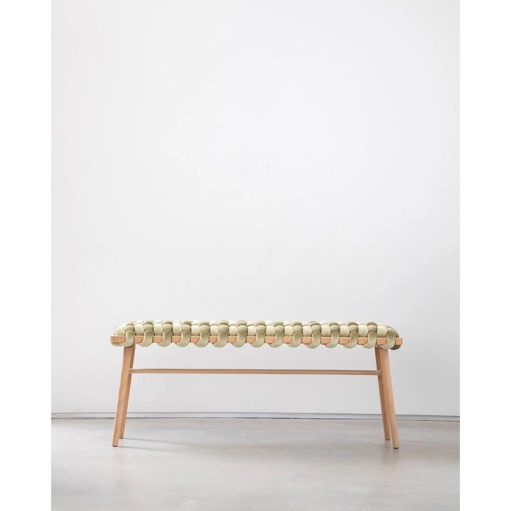 Description: The woven bench is a meticulously crafted piece that adds a playful yet sophisticated touch to any entryway or living area. Using a unique weaving technique, this handmade bench combines soft velvet fabric and durable Beechwood for both aesthetic and functional value that will endure for years to come.
