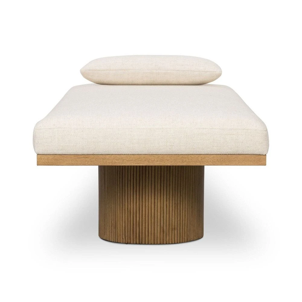 - Description: Finished in a warm honey, column-style legs of rubberwood veneer feature bullnose reeding for a midcentury-inspired touch. Upholstered with cream-colored high-performance fabric exclusive to Four Hands, fixed cushioning and a loose headrest invite you to settle in.