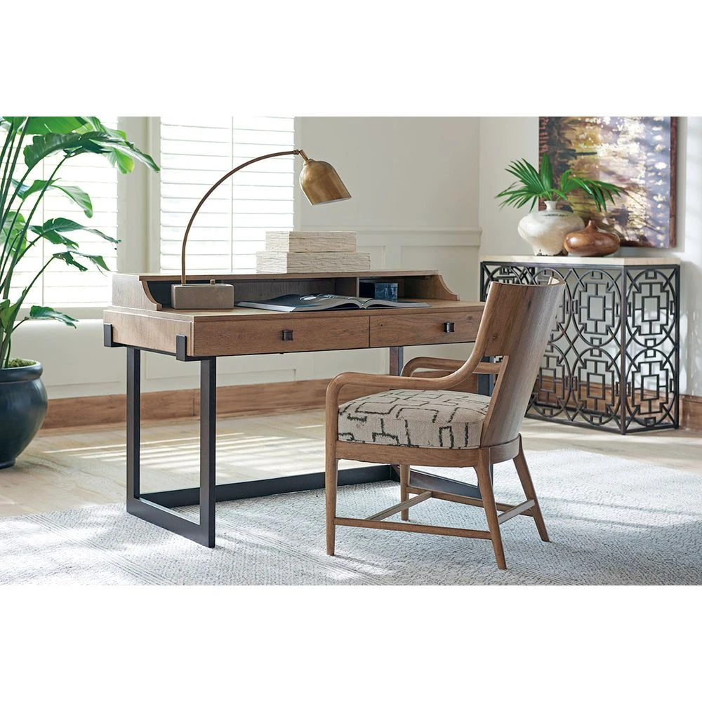 Los Altos is crafted from select Knotty Oak veneers that are gently wire-brushed to enhance the character of the grain, then finished in a semi-transparent natural oak stain and hand-rubbed with a linen-white finishing glaze. The styling conveys a sense of authenticity and casual sophistication. Accent materials include aged bronze metal, travertine, woven Abaca and banana leaf. The look is best described as Global Transitional, offering fresh and relevant designs that celebrate the kinship and diversity of a global community.